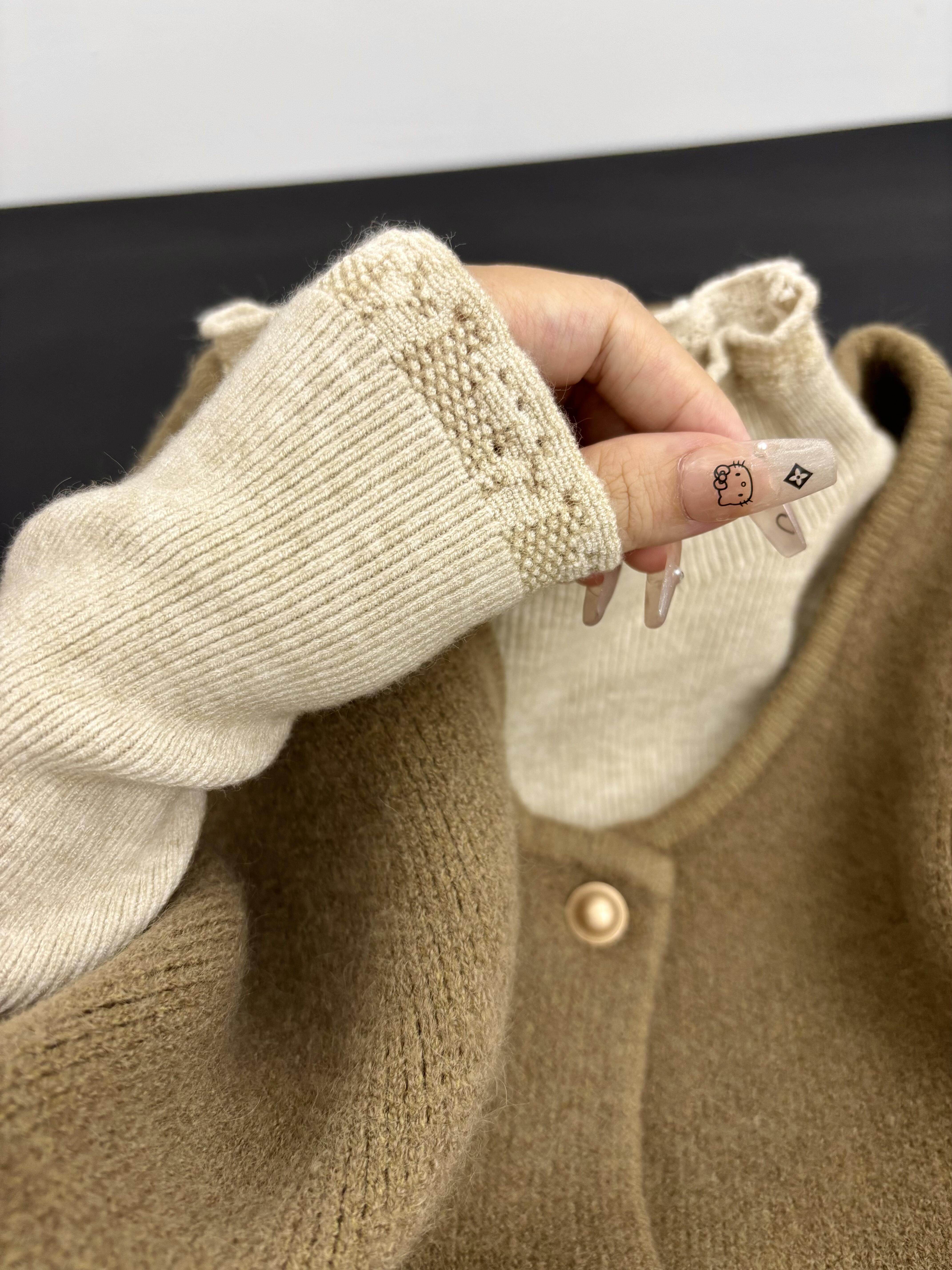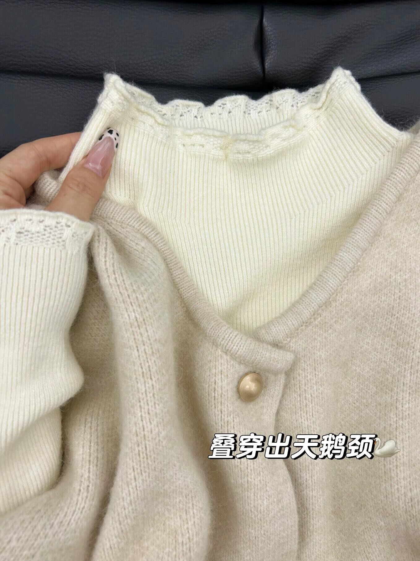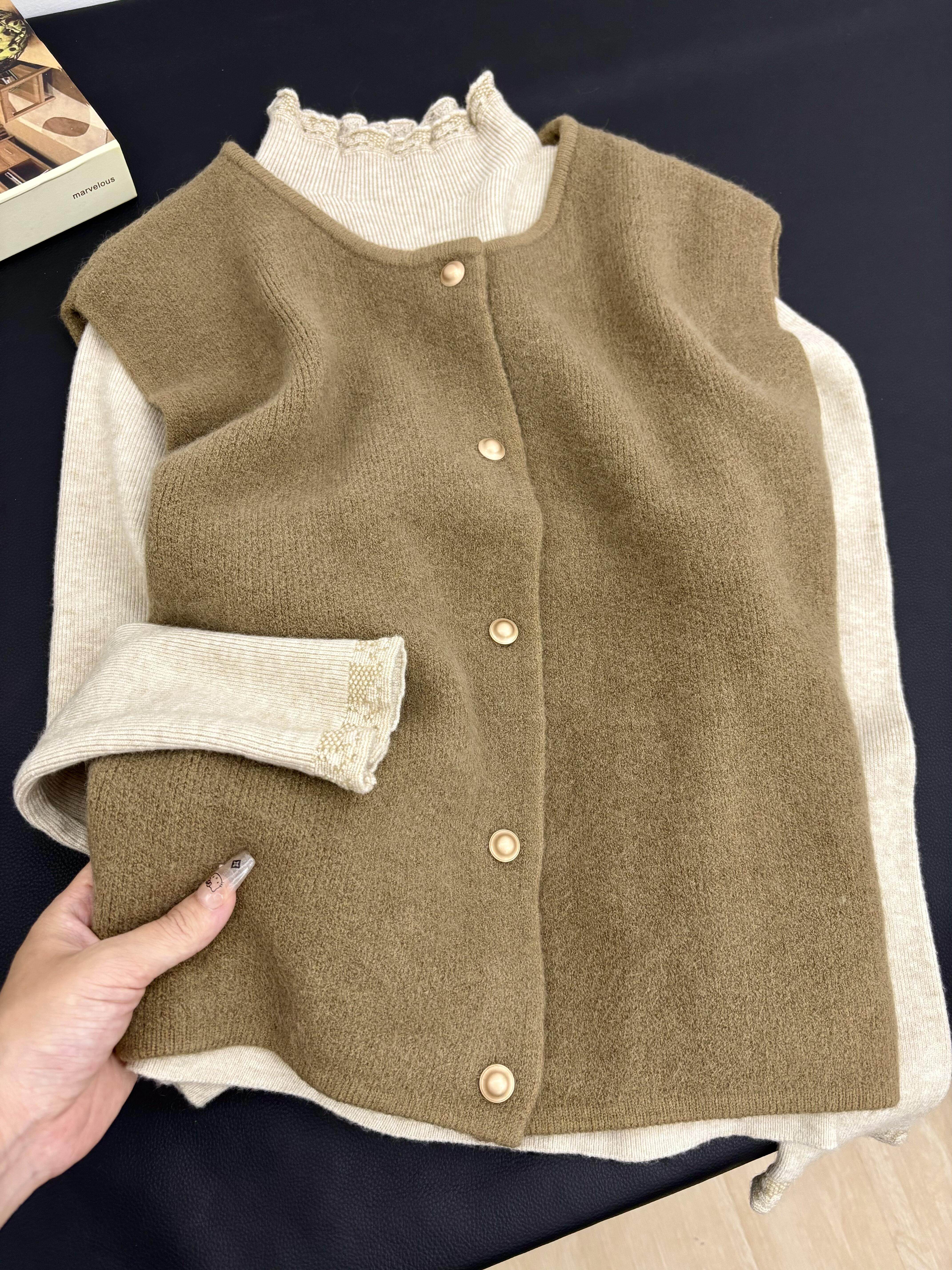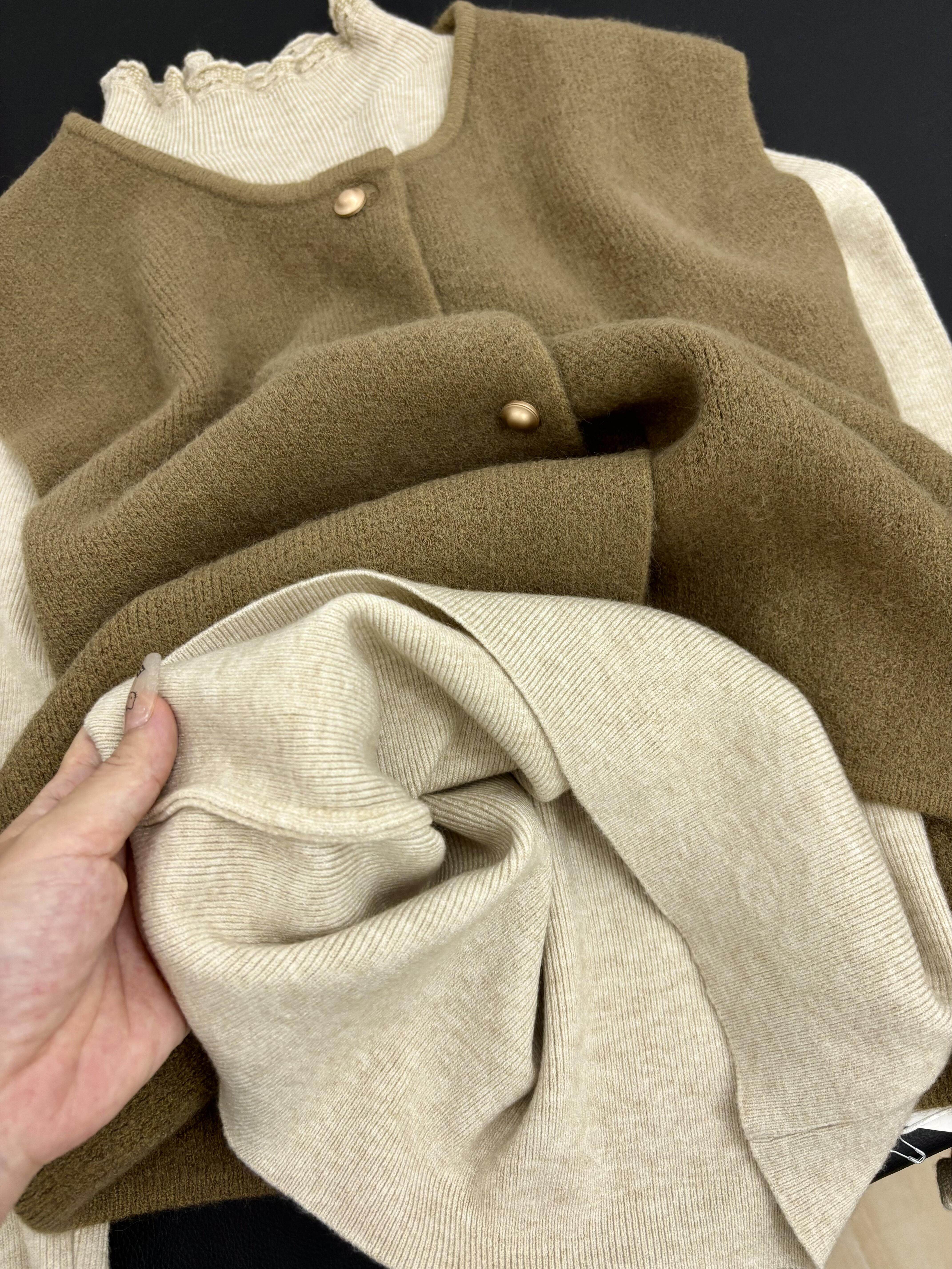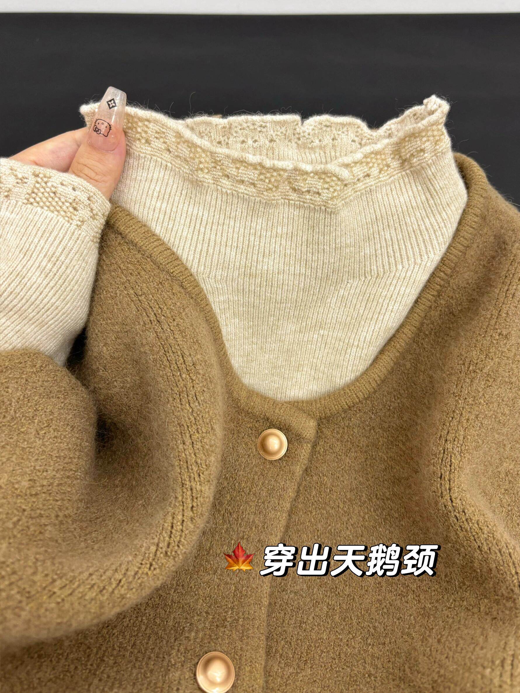 韩系木耳边半高领针织衫女秋冬季新款修身打底衫叠穿上衣马甲套装