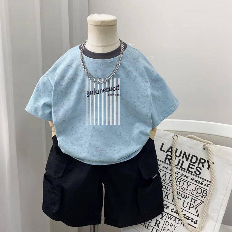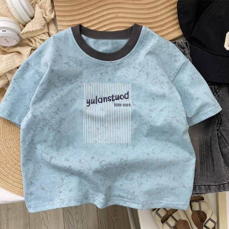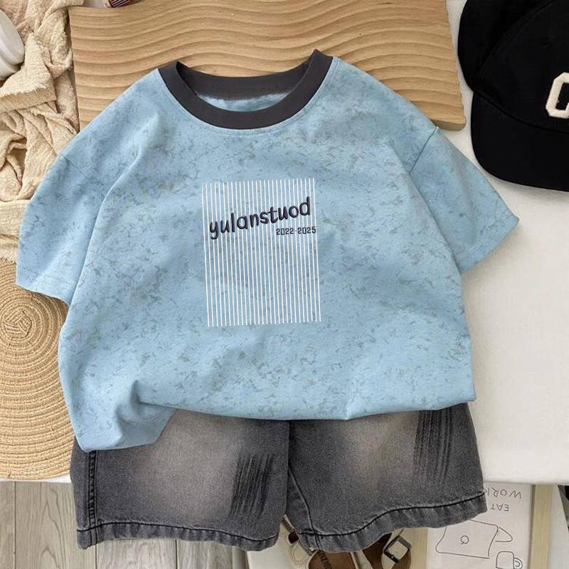 男童T恤短袖夏款2026新夏季中童重工扎染男孩儿童休闲纯棉半袖潮