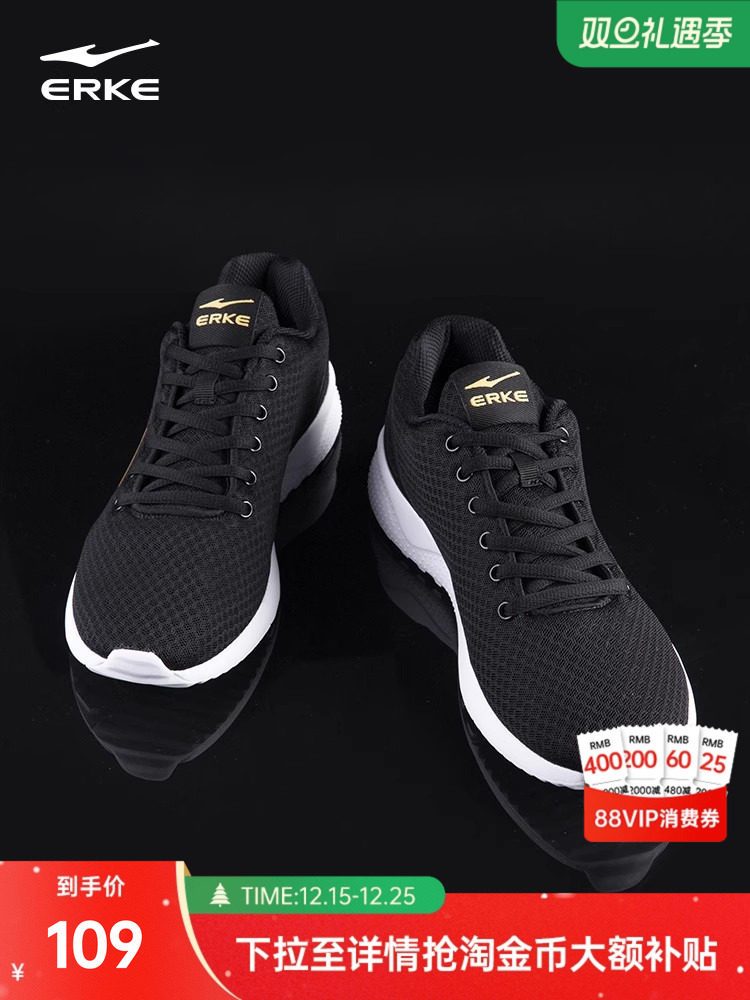 鸿星尔克运动鞋冬季新款男鞋跑步鞋软底跑鞋爸爸休闲鞋中年黑鞋子