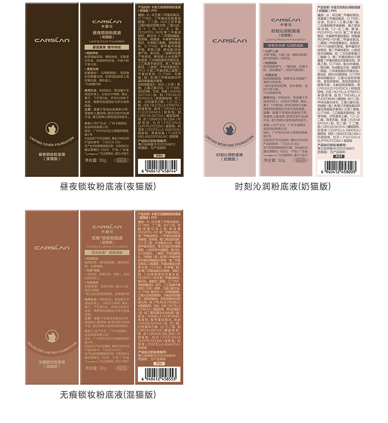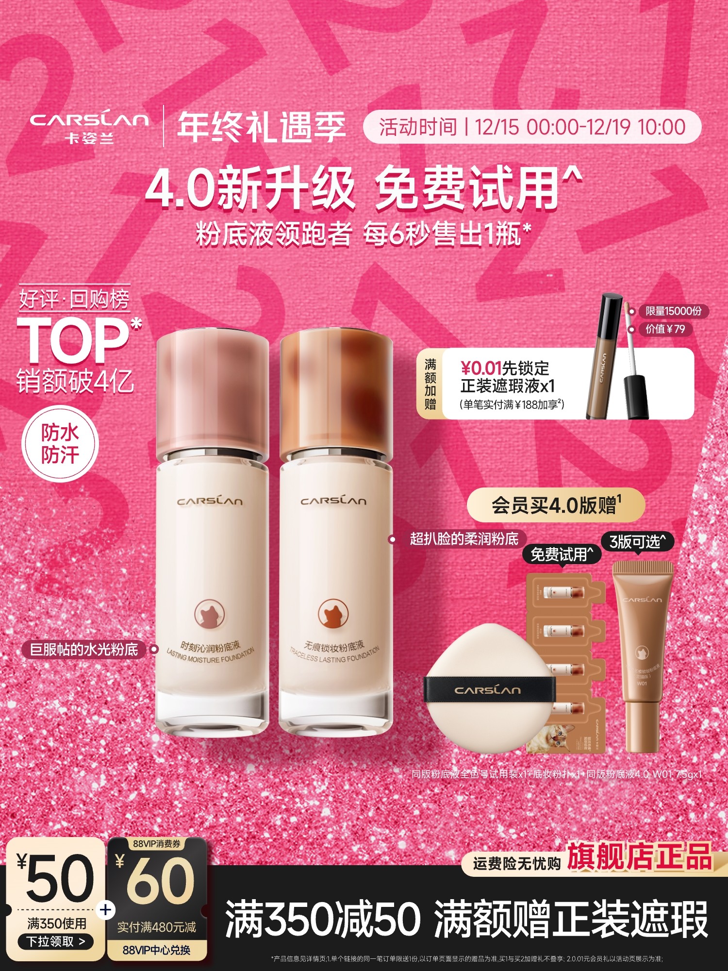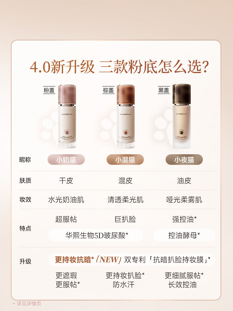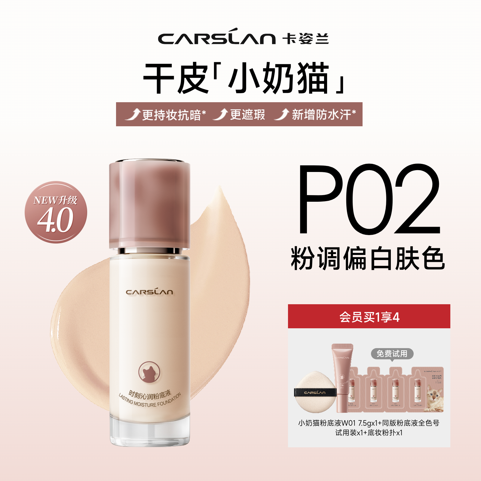 4.0新升级/卡姿兰粉底液遮瑕持久不脱妆小混猫奶猫夜猫粉底液官方