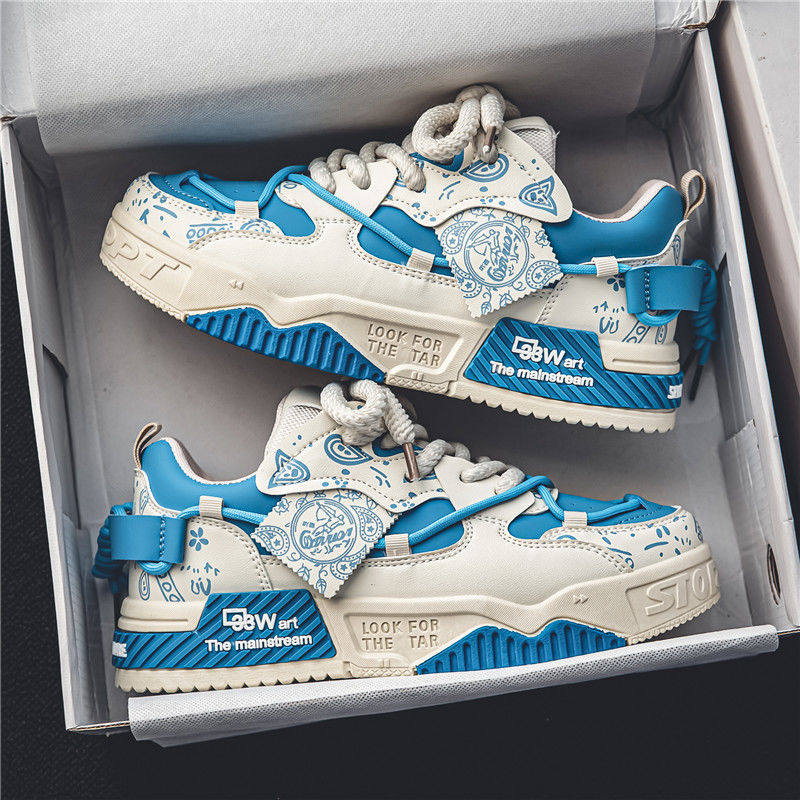 男鞋2025新款夏季百搭小众原创休闲平板鞋运动厚底增高面包潮鞋子