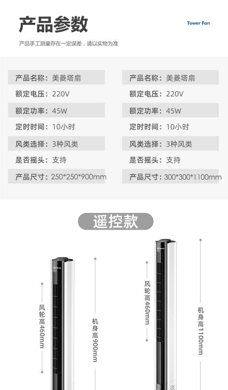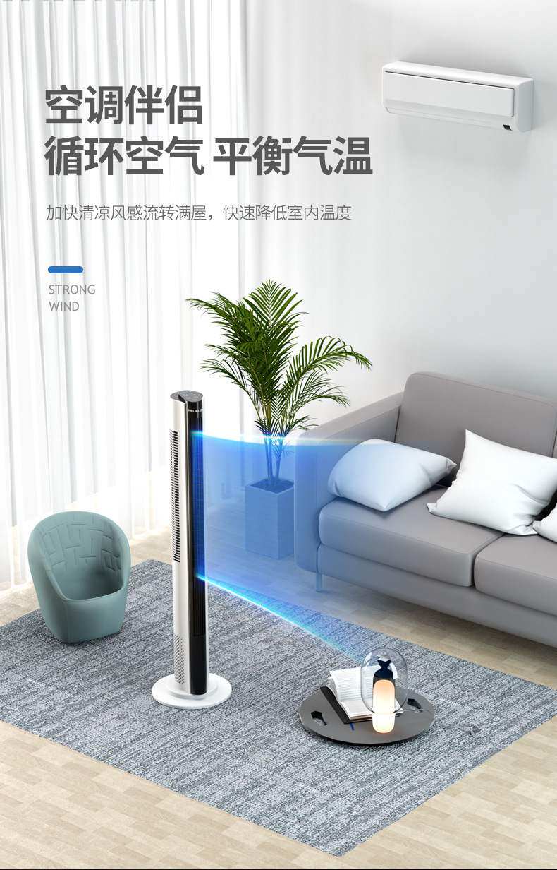 Electric fan, household tower fan, floor fan, shaking head,