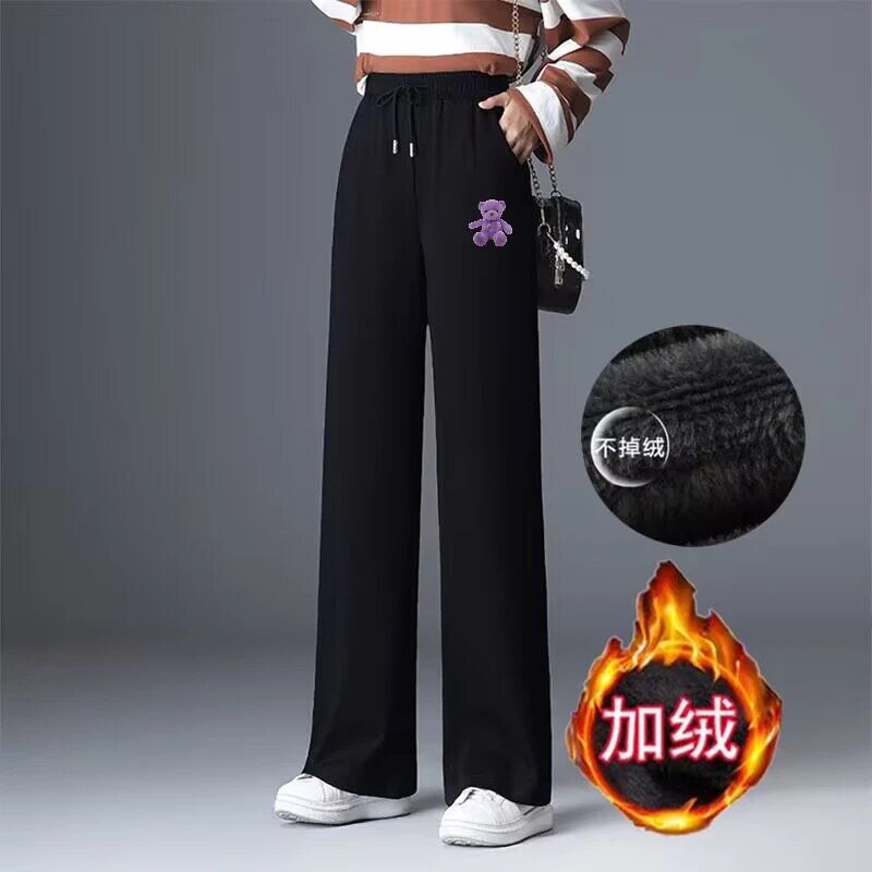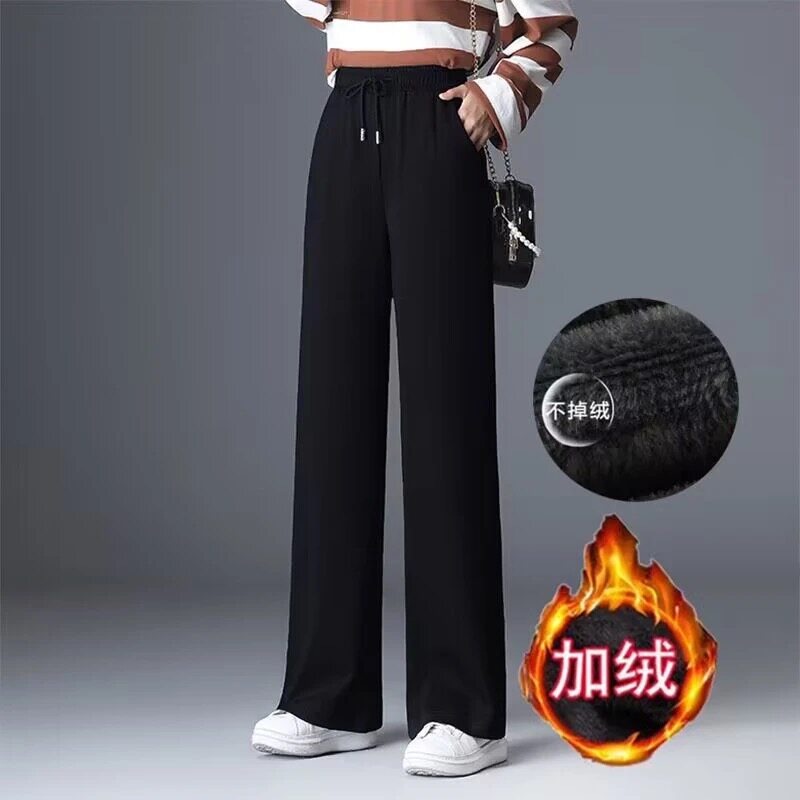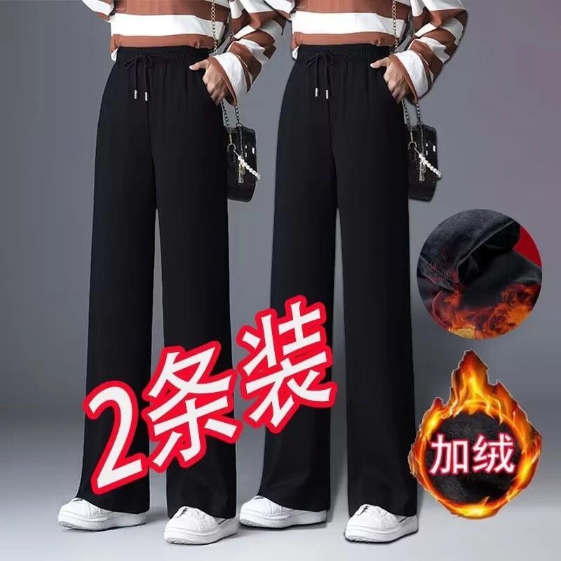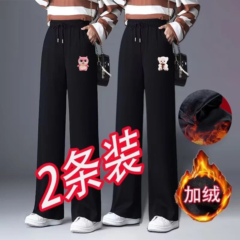 秋冬季休闲宽松百搭显瘦运动长裤女士加绒加厚耐磨保暖舒适直筒裤
