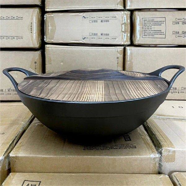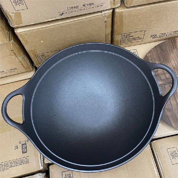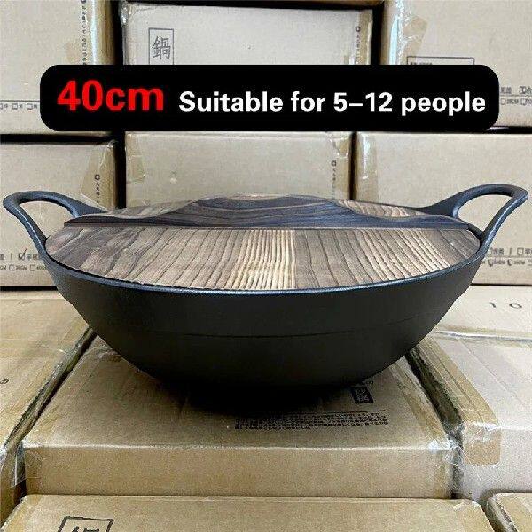 40cm large cast iron Frying pan Cast iron pot Household large pot Deepen Old Style Double Ear Pot Household stir fryer wok