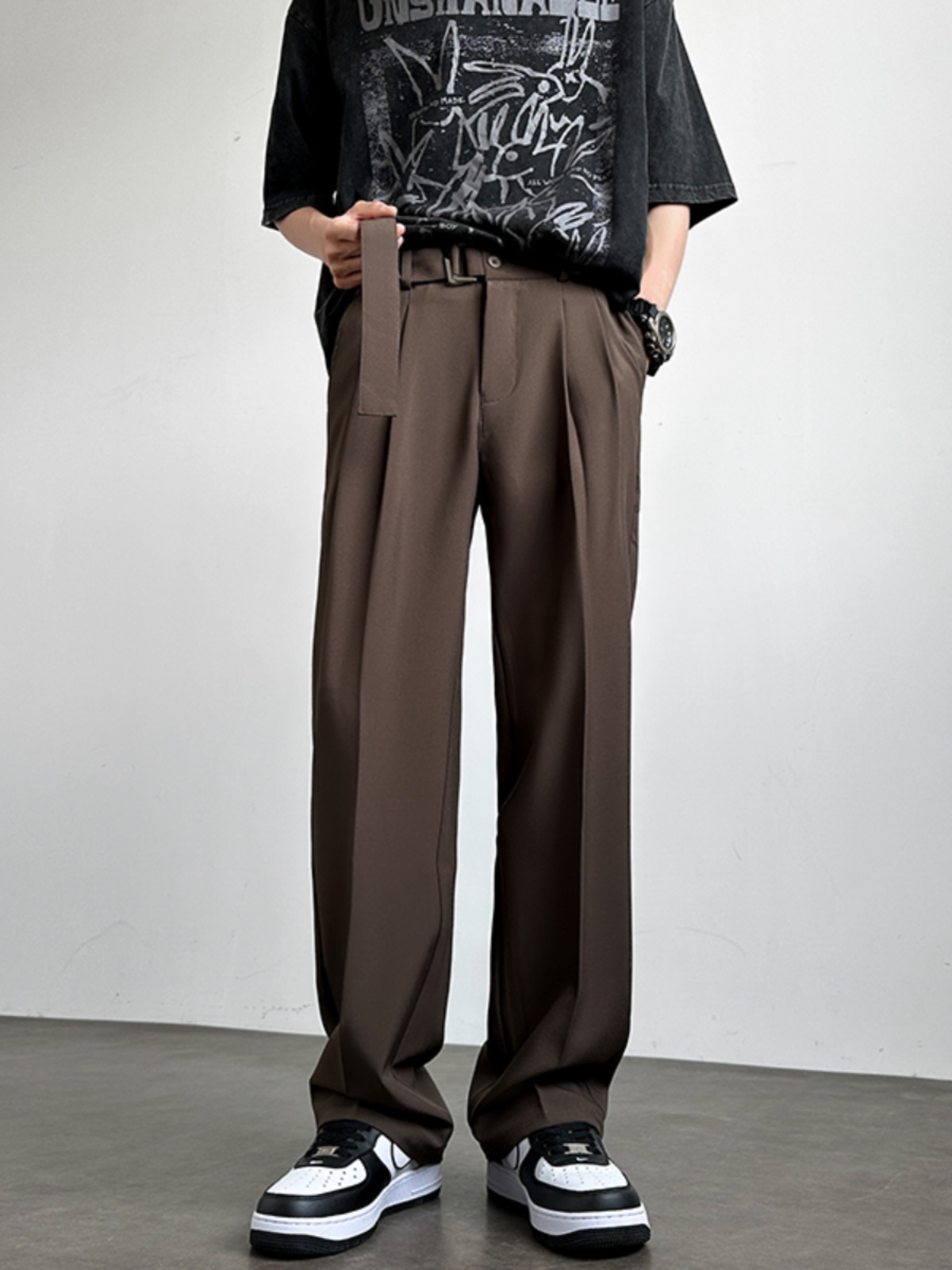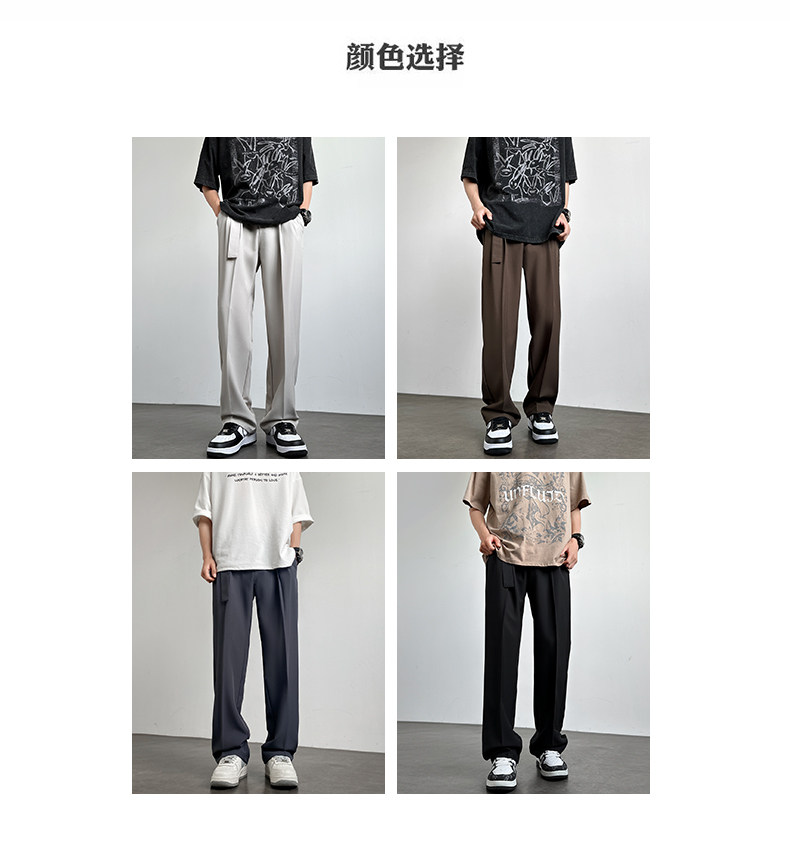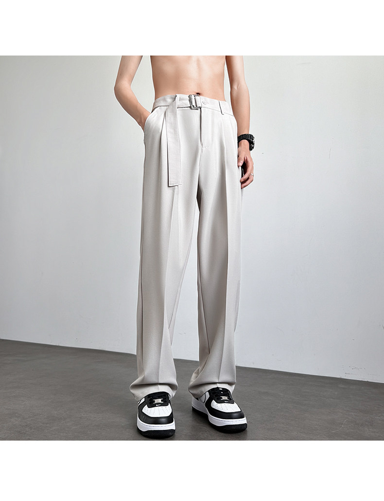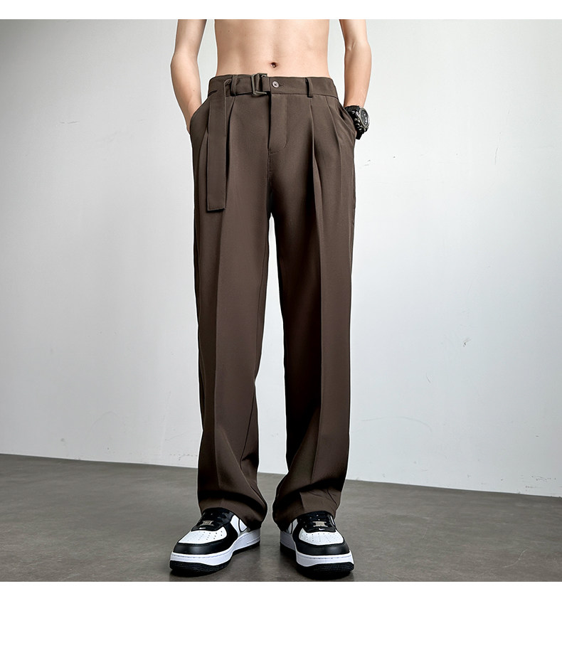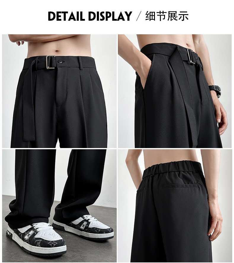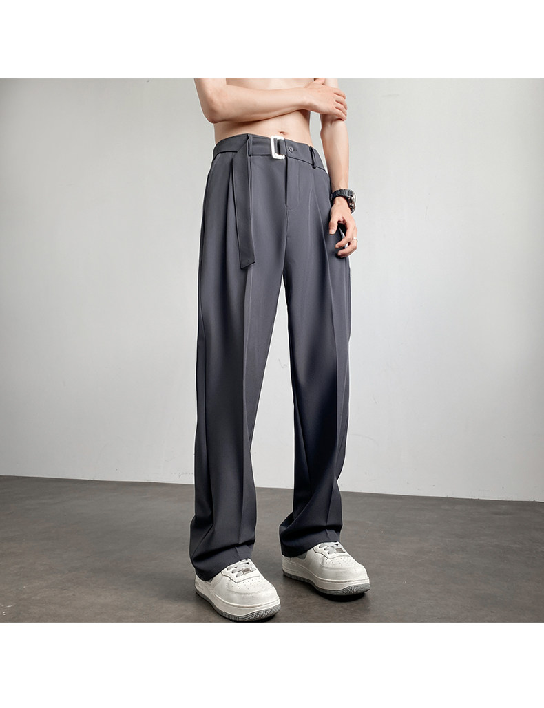 CetKy自带腰带慵懒休闲裤潮牌薄款男生垂坠感冰丝宽松直筒西裤男
