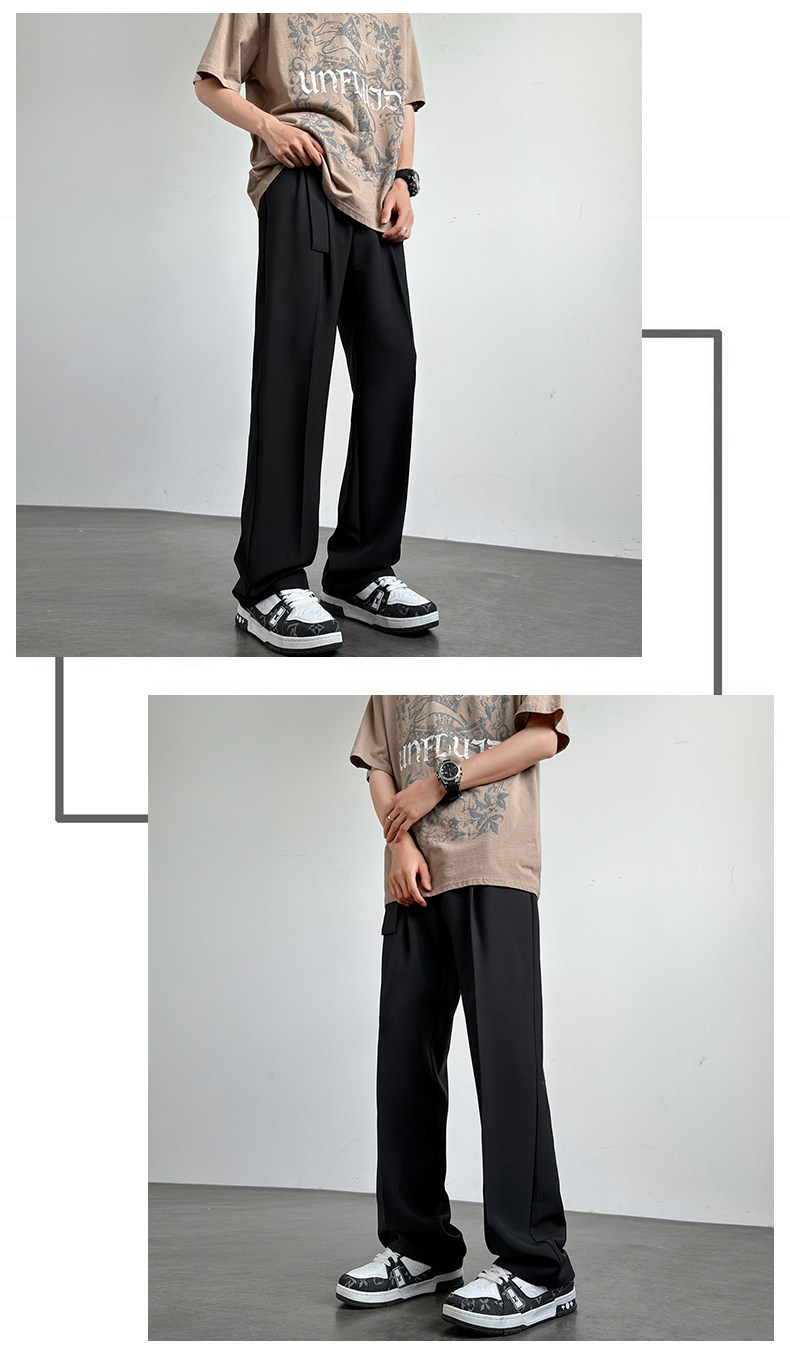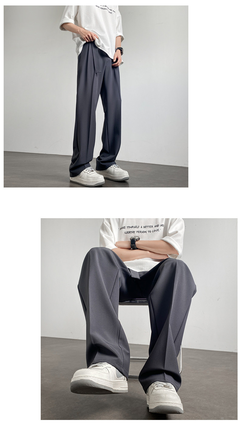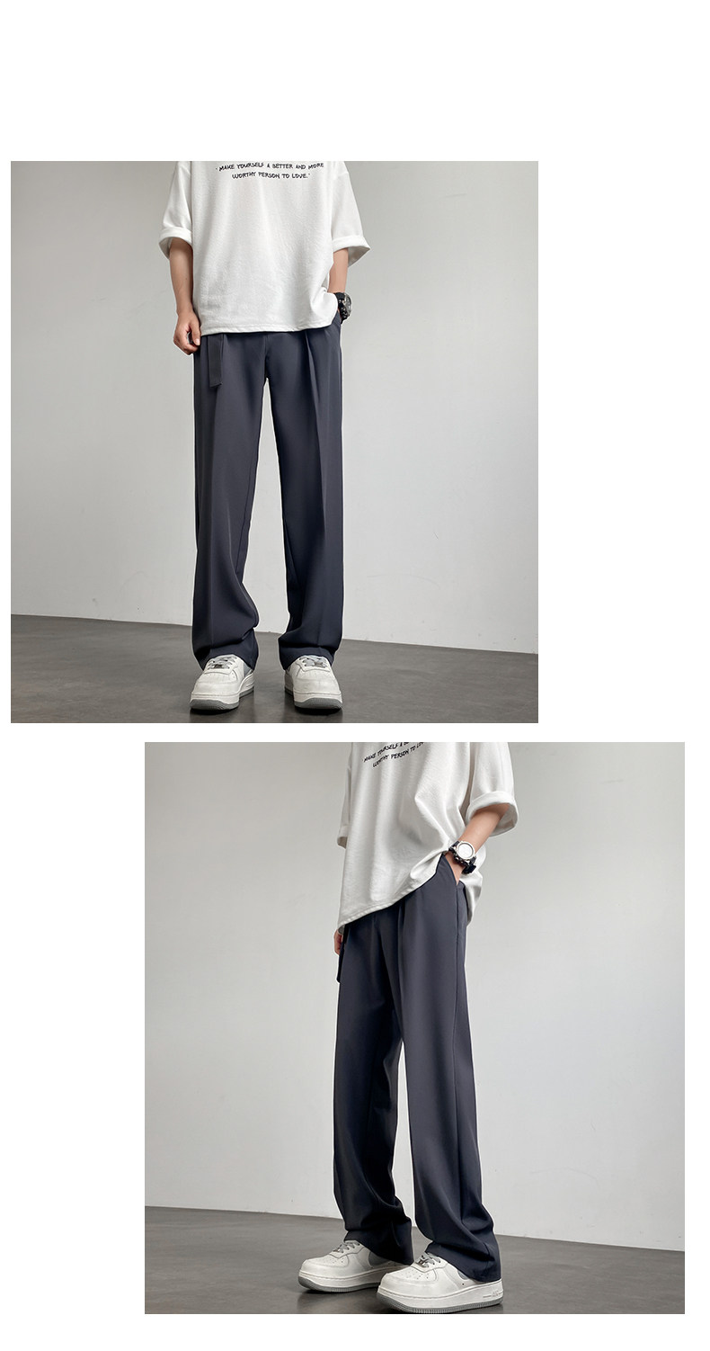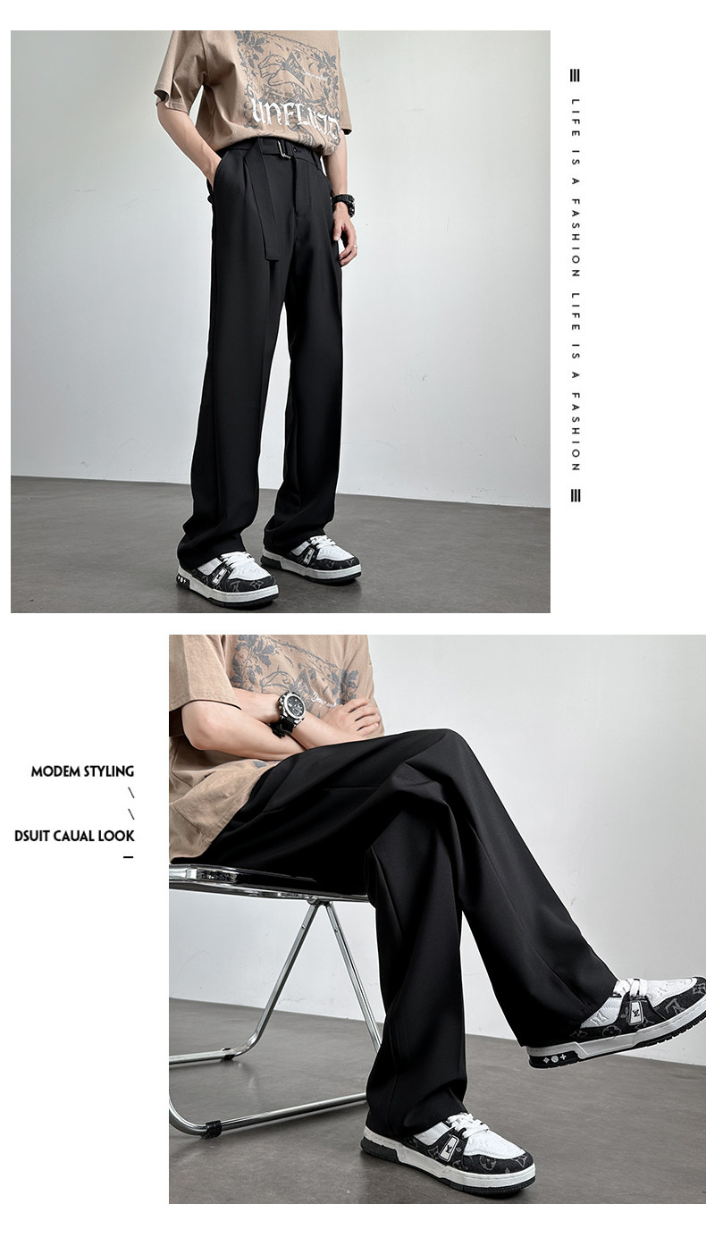 CetKy自带腰带慵懒休闲裤潮牌薄款男生垂坠感冰丝宽松直筒西裤男