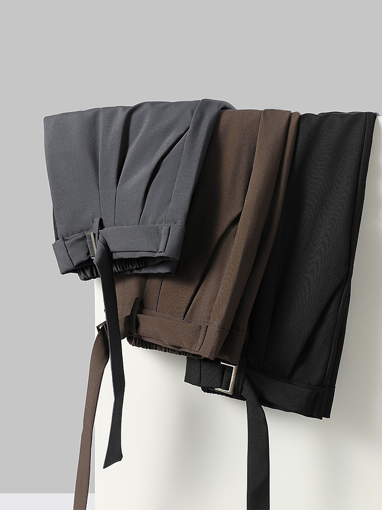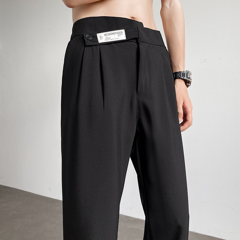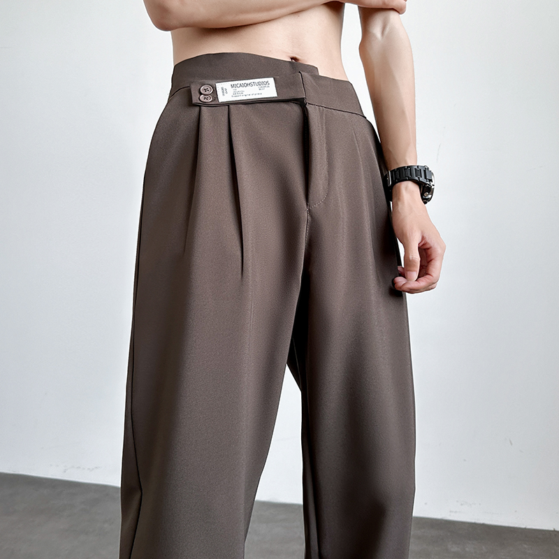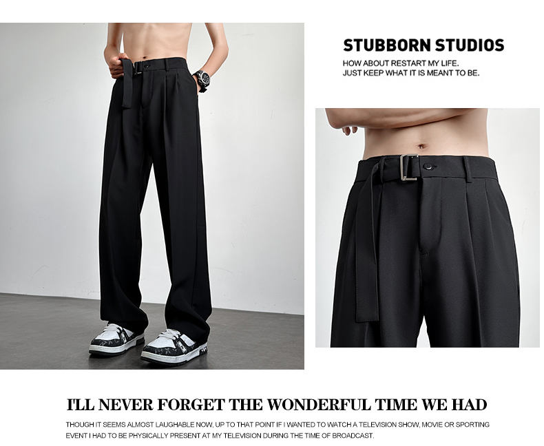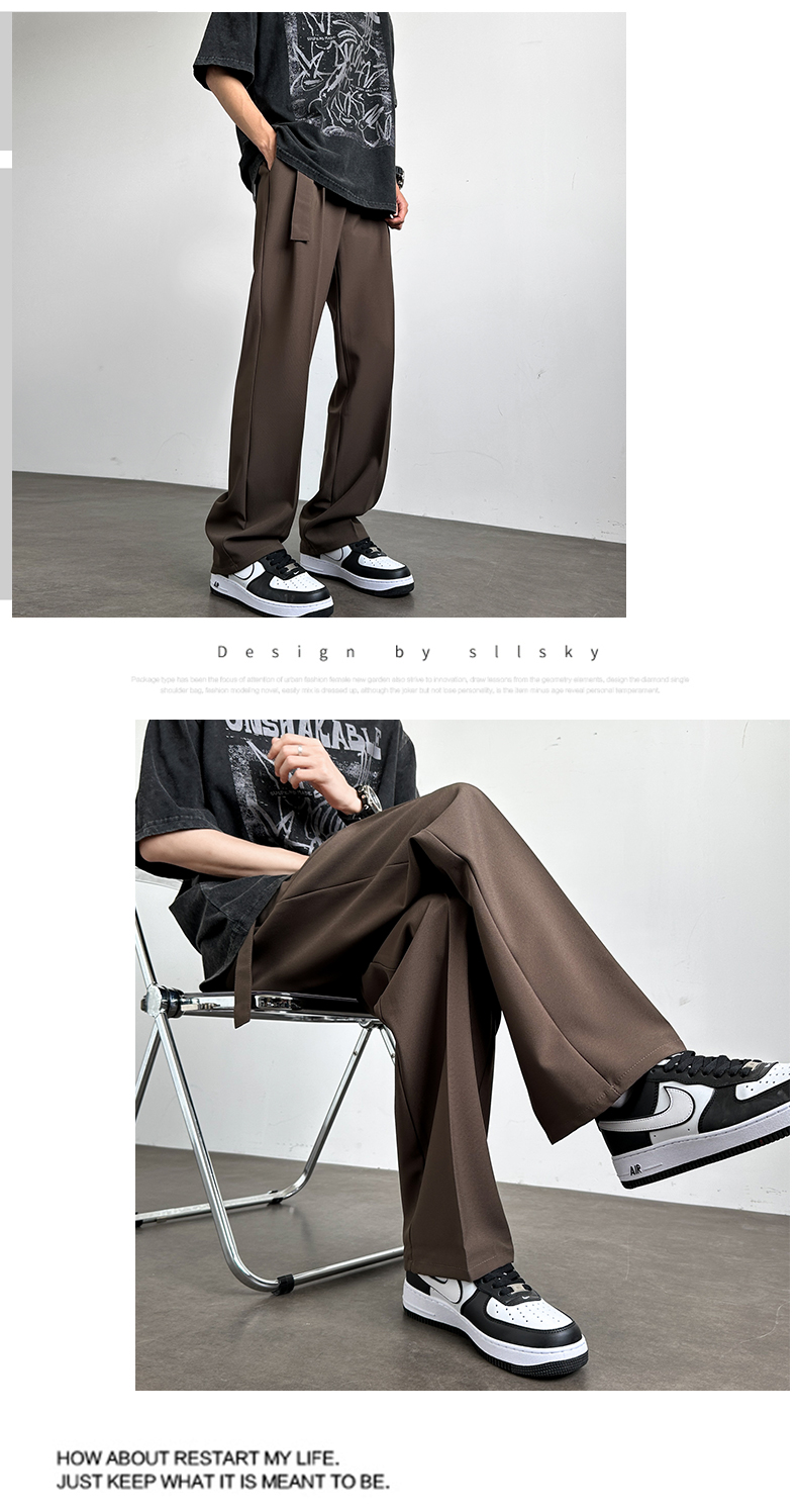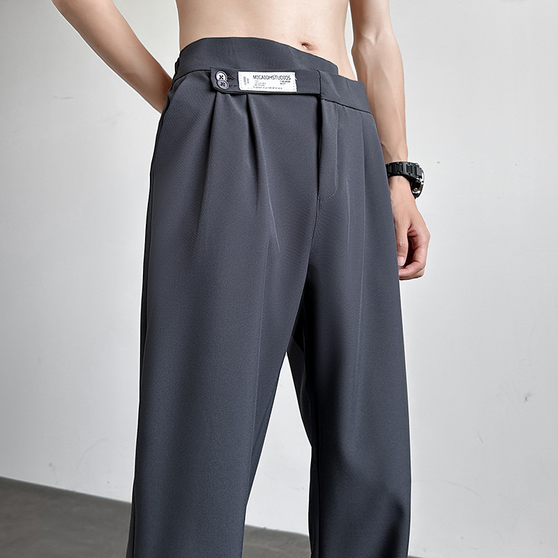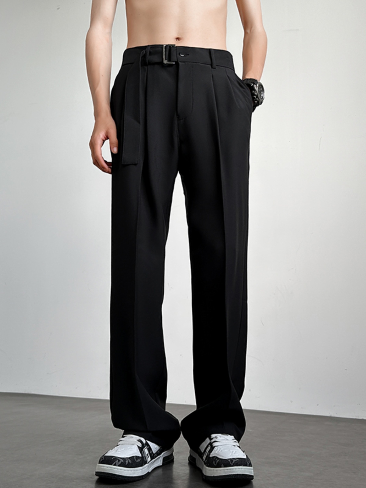 CetKy自带腰带慵懒休闲裤潮牌薄款男生垂坠感冰丝宽松直筒西裤男