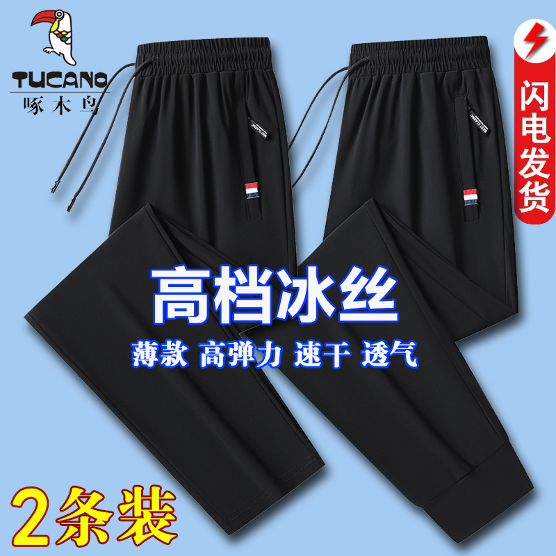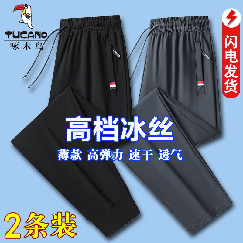 啄木鸟冰丝裤男夏季薄款速干裤宽松裤子休闲裤大码运动裤直筒长裤