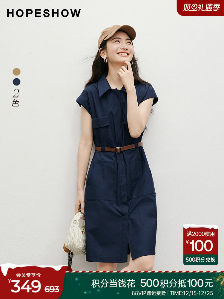 红袖休闲连衣裙2025夏季新款女装知识分子风翻领大方得体的裙子