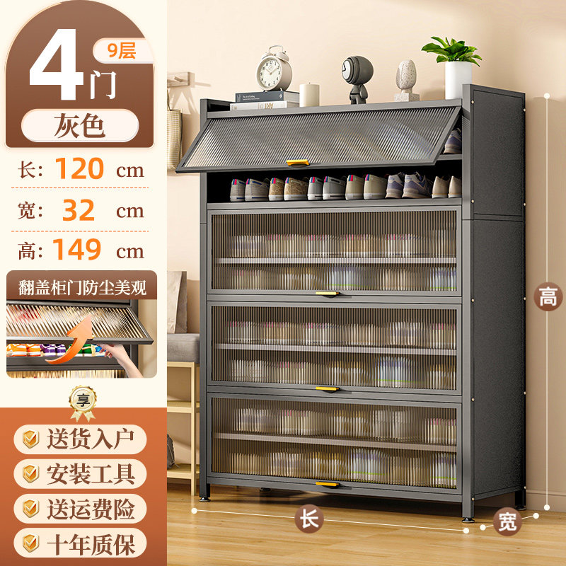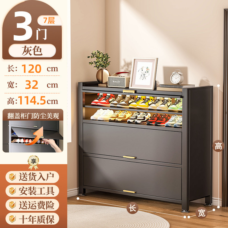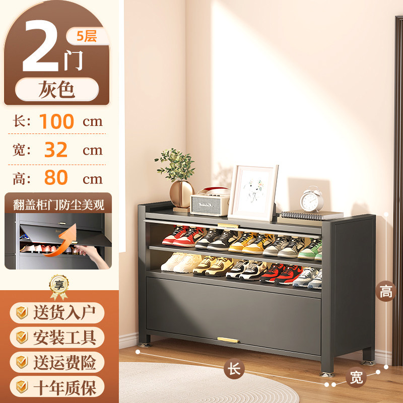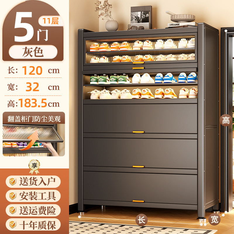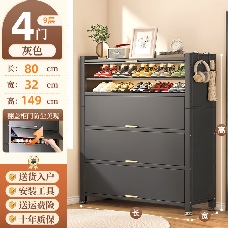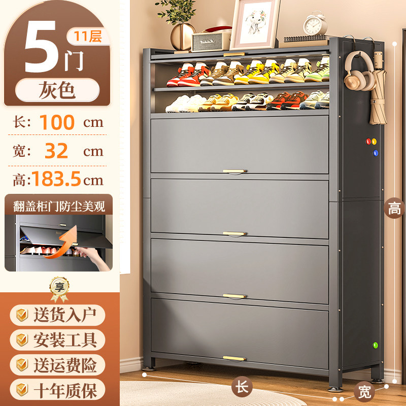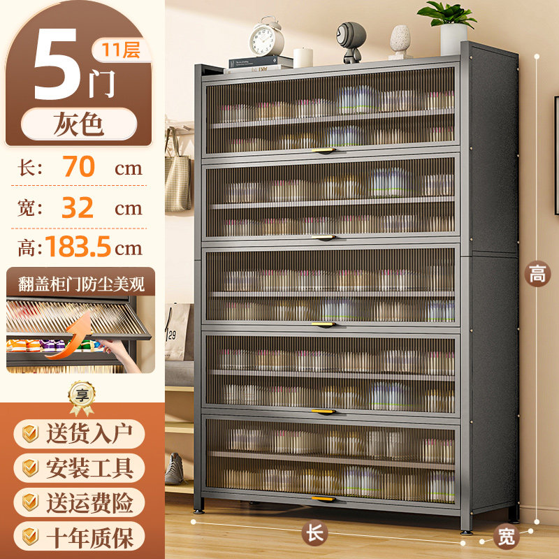 鞋柜钢制家用门口靠墙一体多层储物柜室内入户大容量落地防尘鞋架
