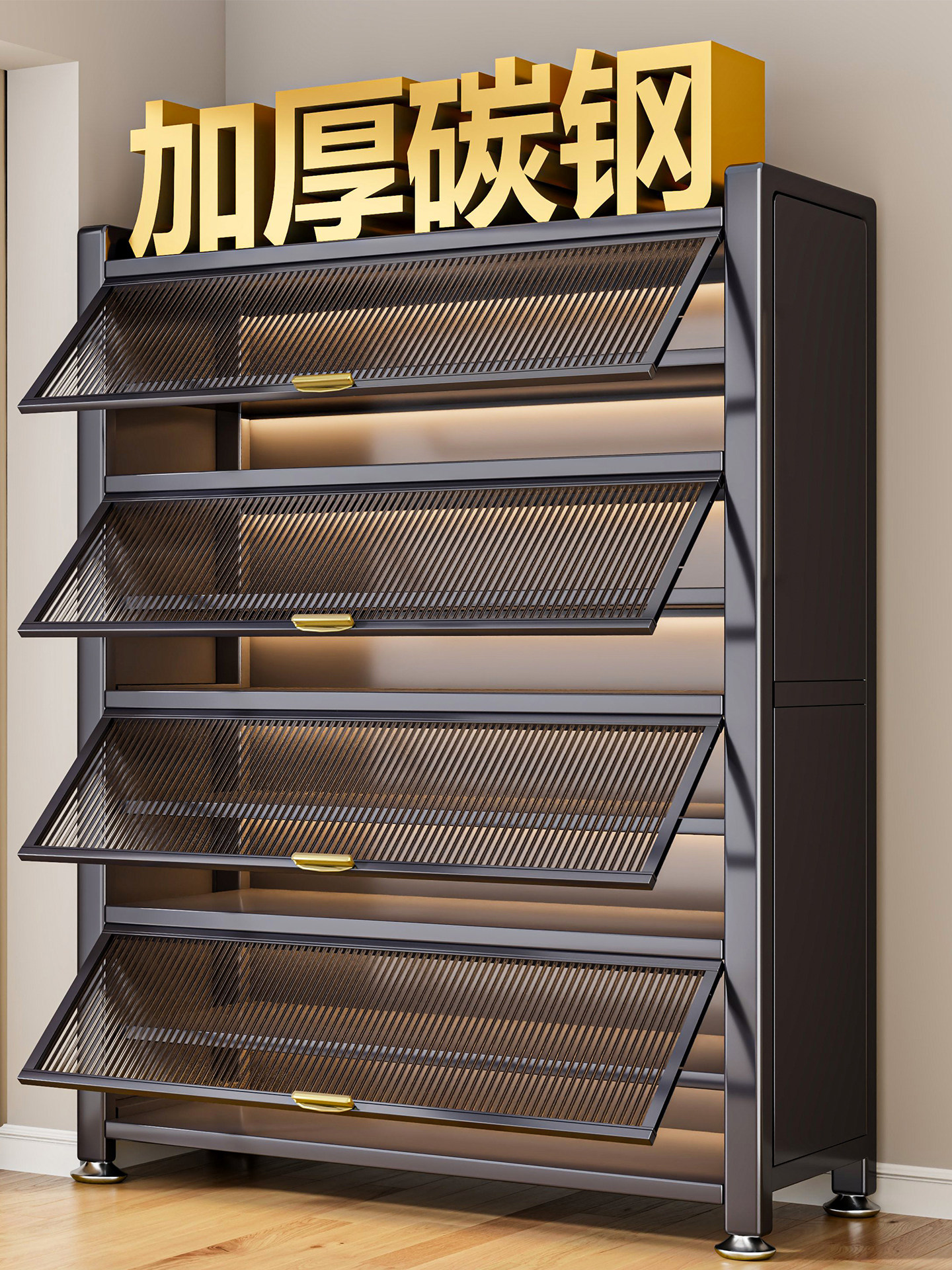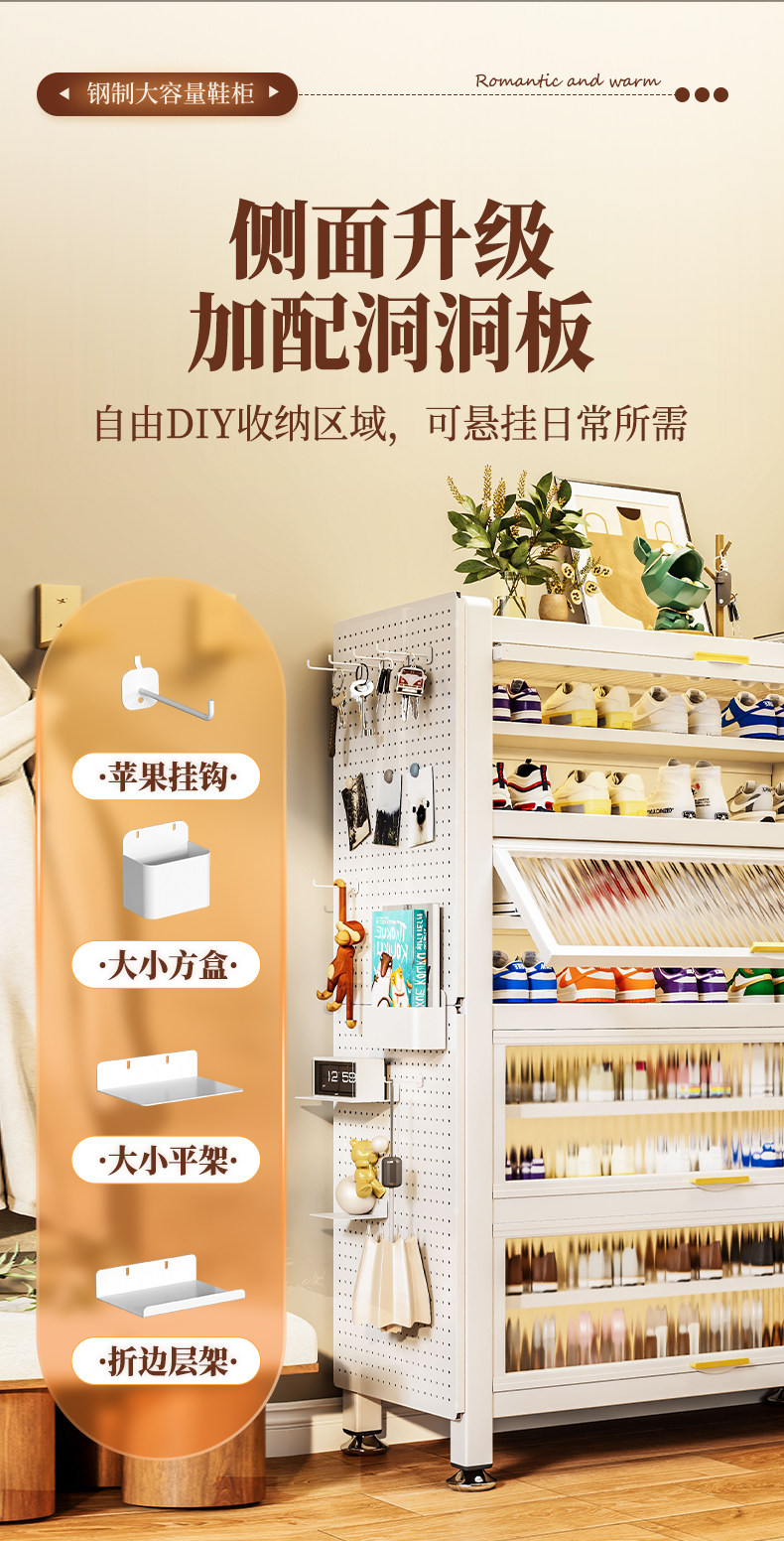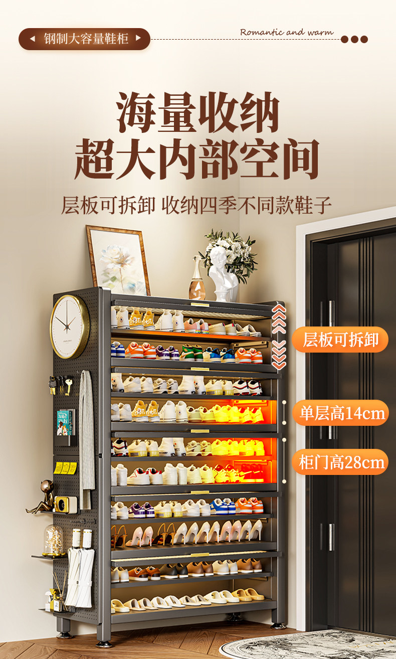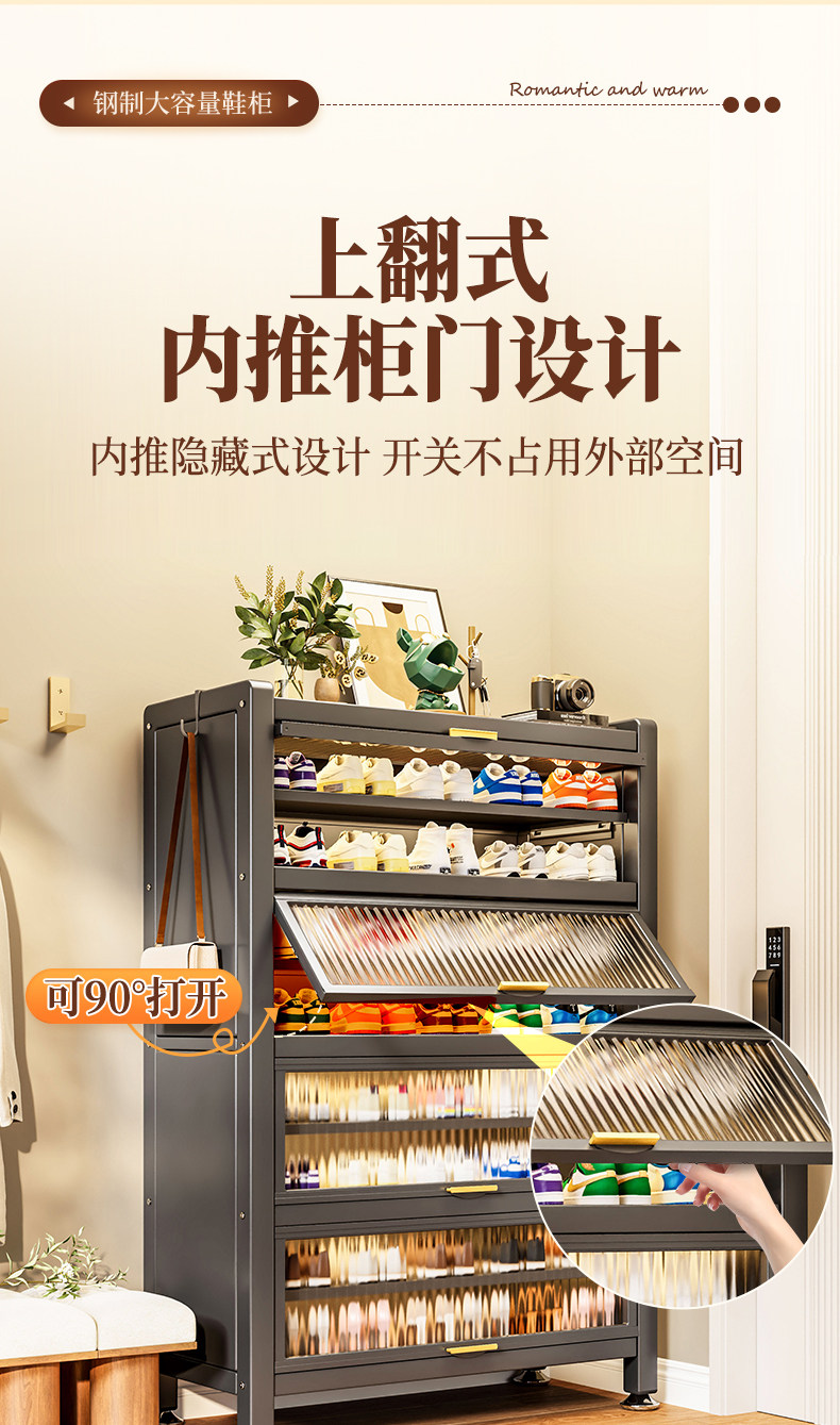 鞋柜钢制家用门口靠墙一体多层储物柜室内入户大容量落地防尘鞋架