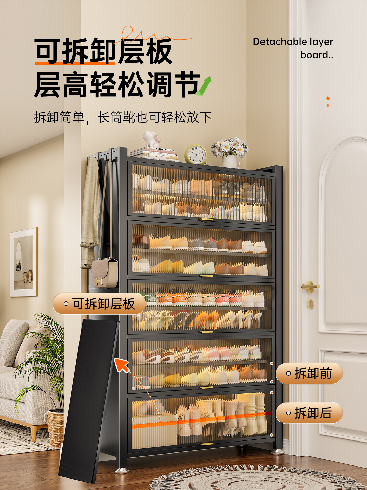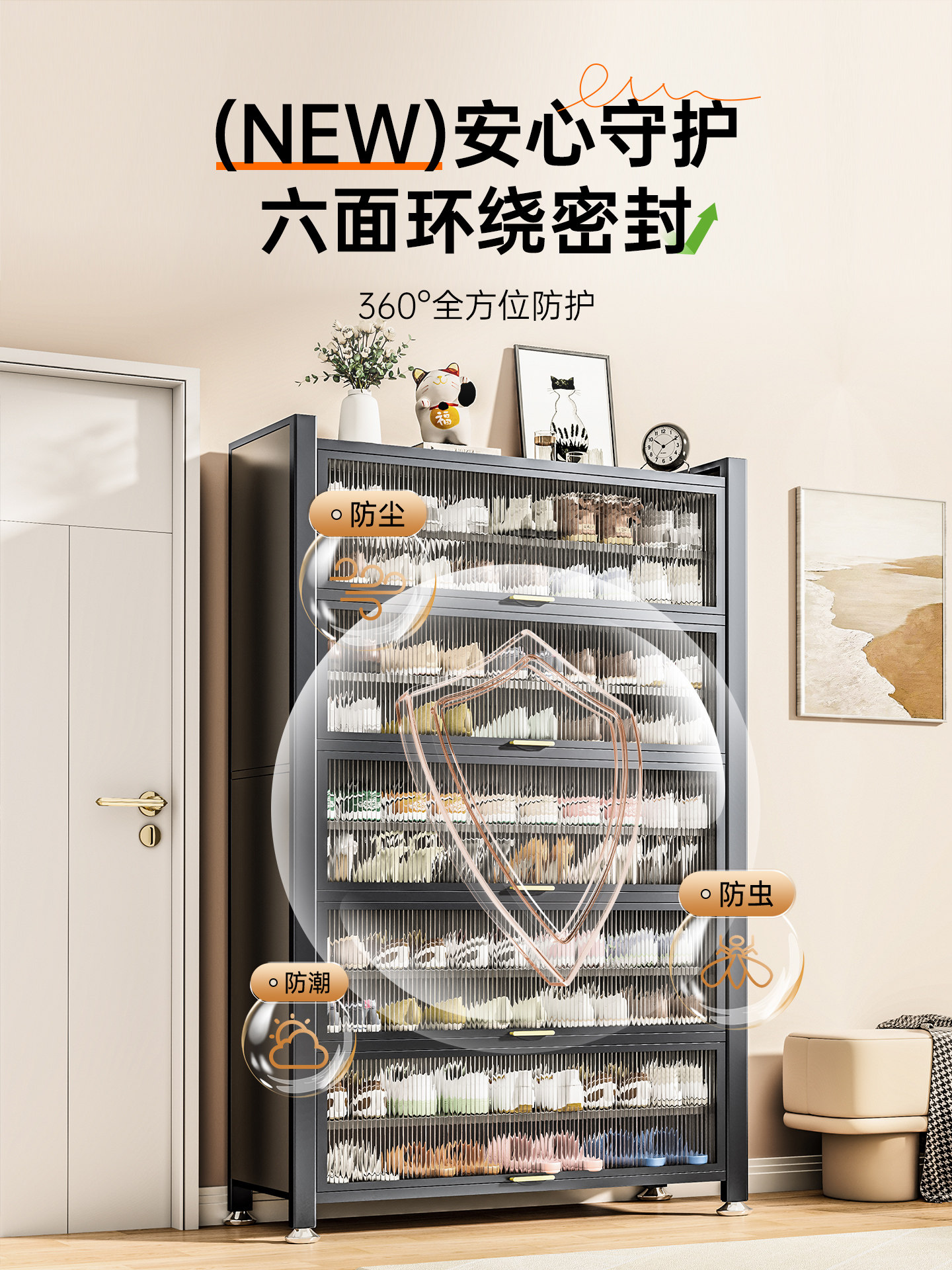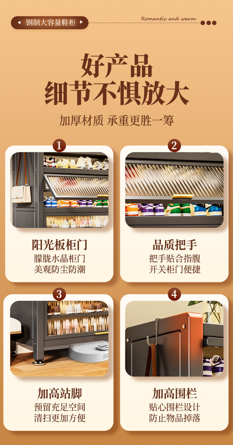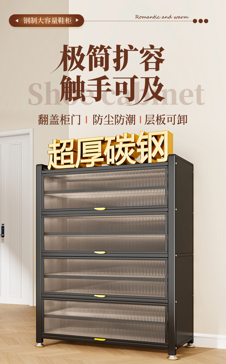 鞋柜钢制家用门口靠墙一体多层储物柜室内入户大容量落地防尘鞋架