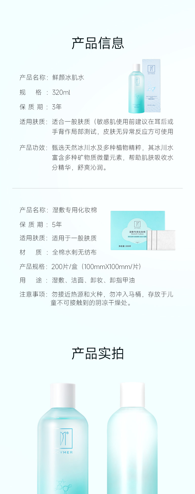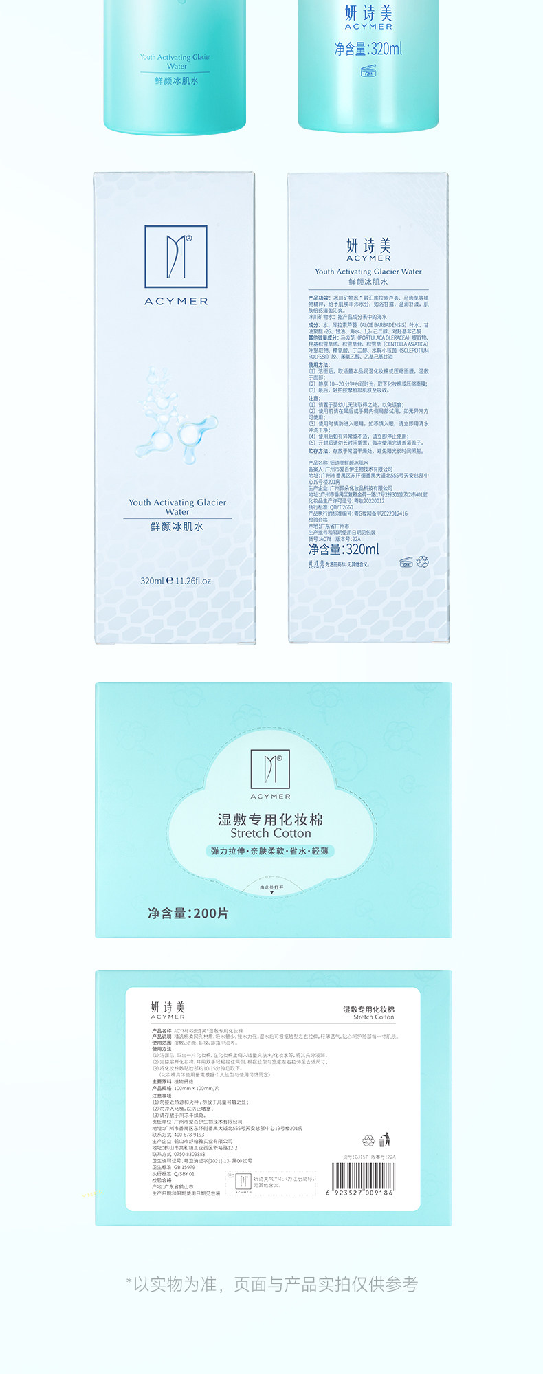 妍诗美【水疗组合】鲜颜冰肌水+湿敷棉爽肤水女补水保湿护肤品