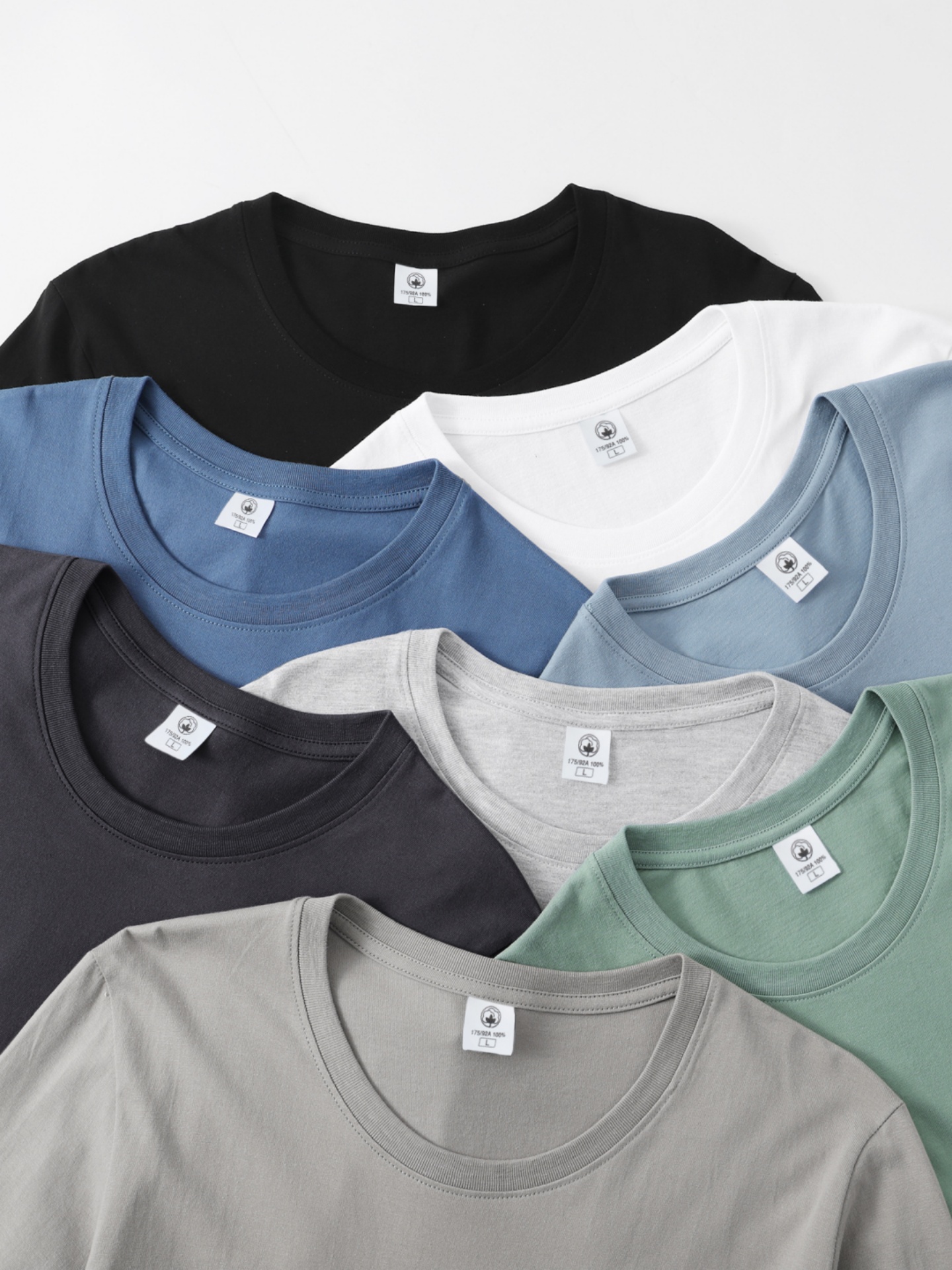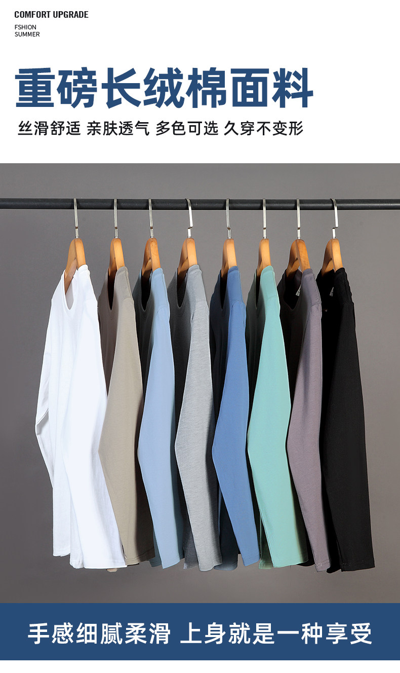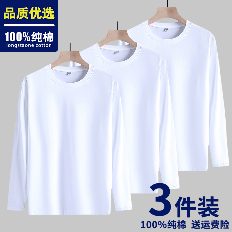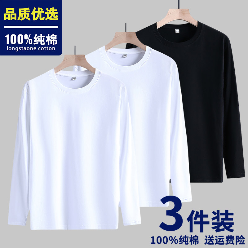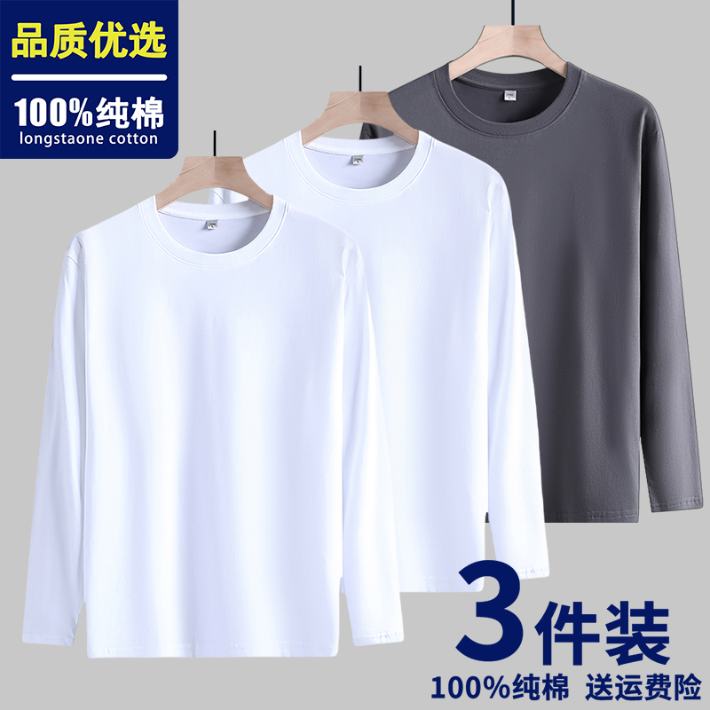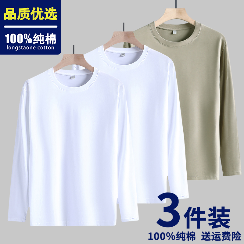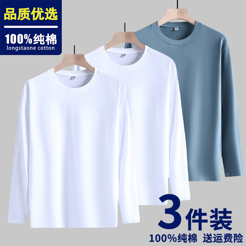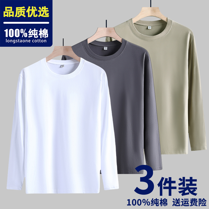 【3件装】新疆长绒棉长袖T恤纯色全棉男款内搭圆领宽松打底衫秋衣