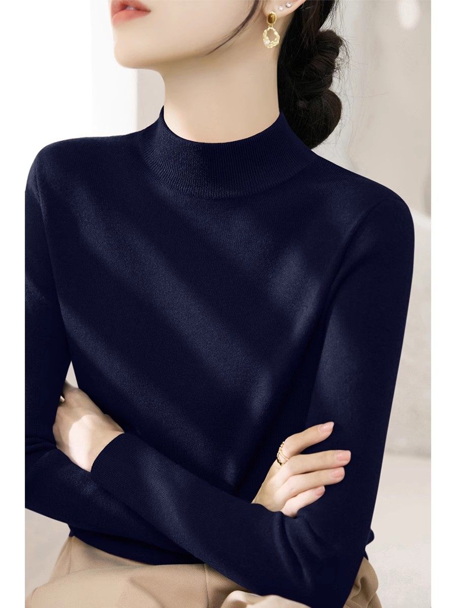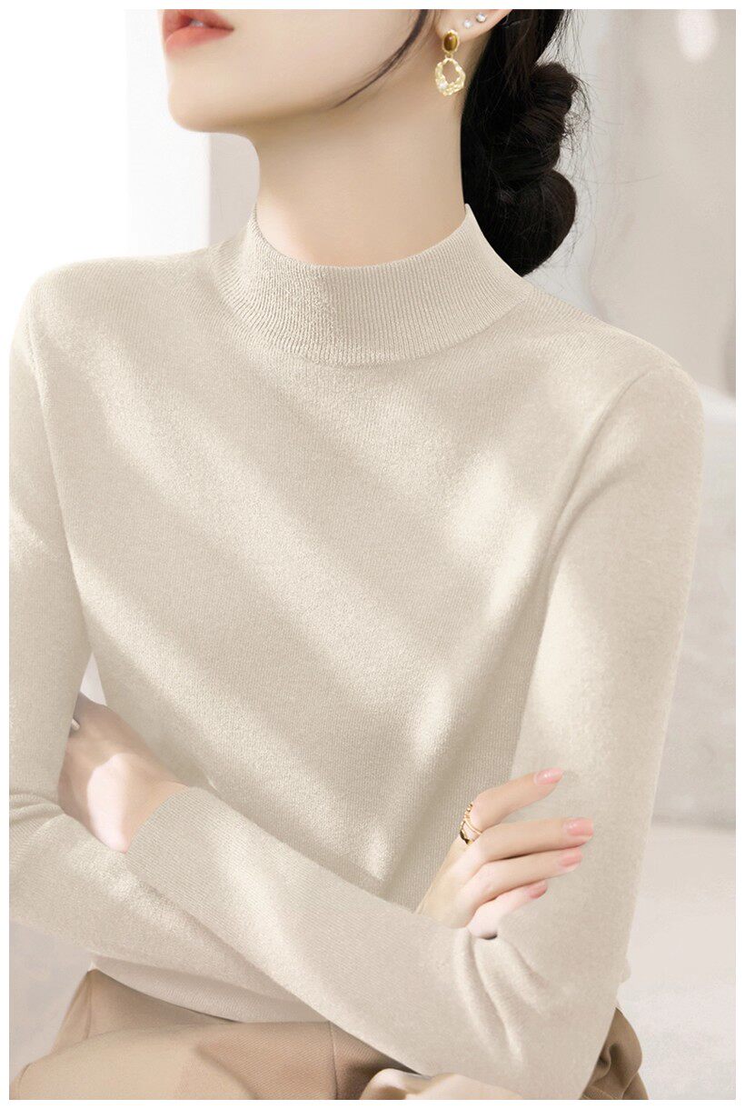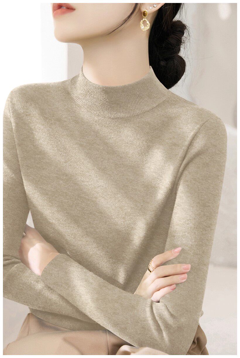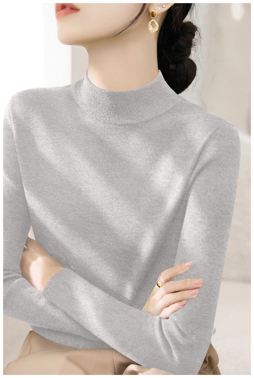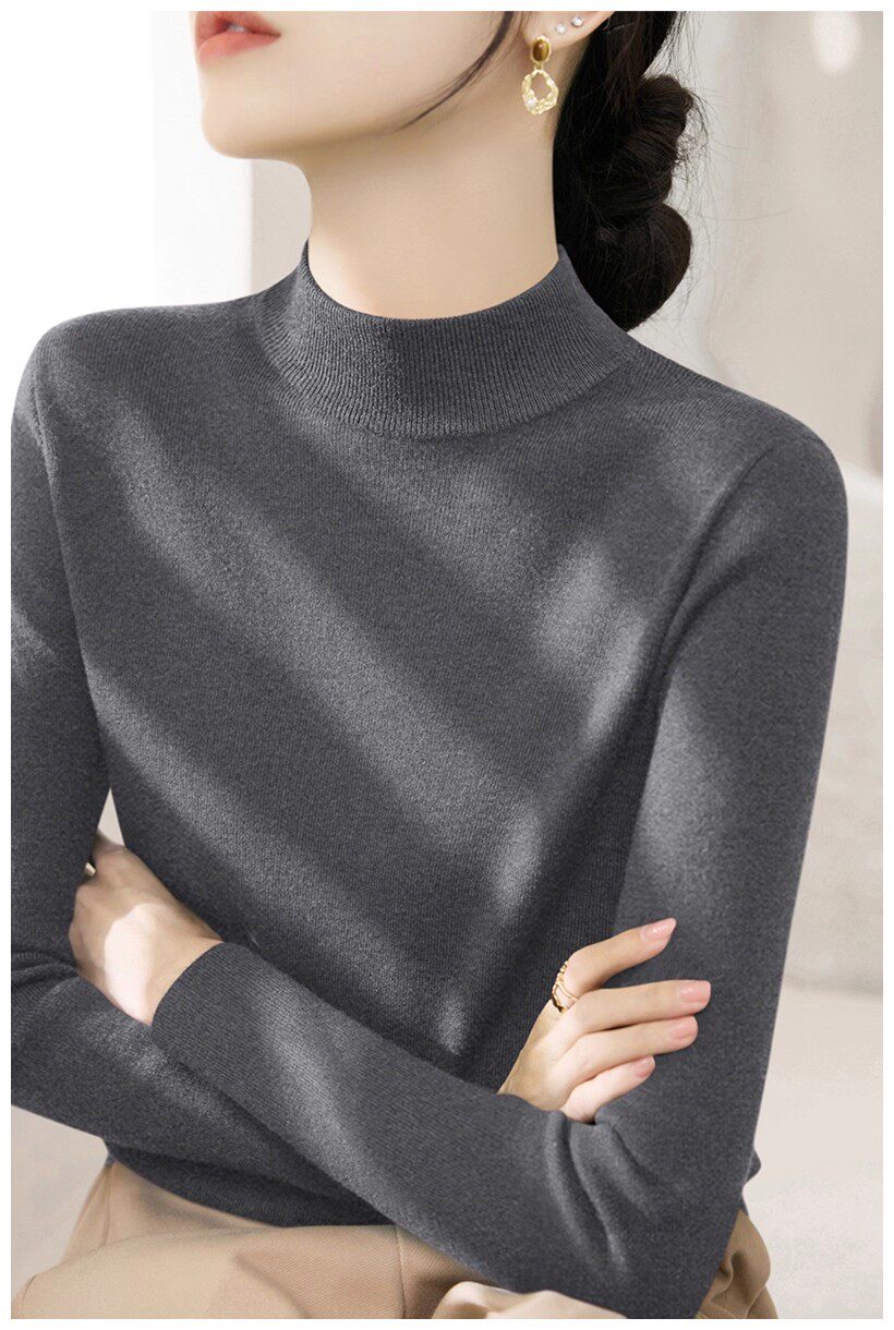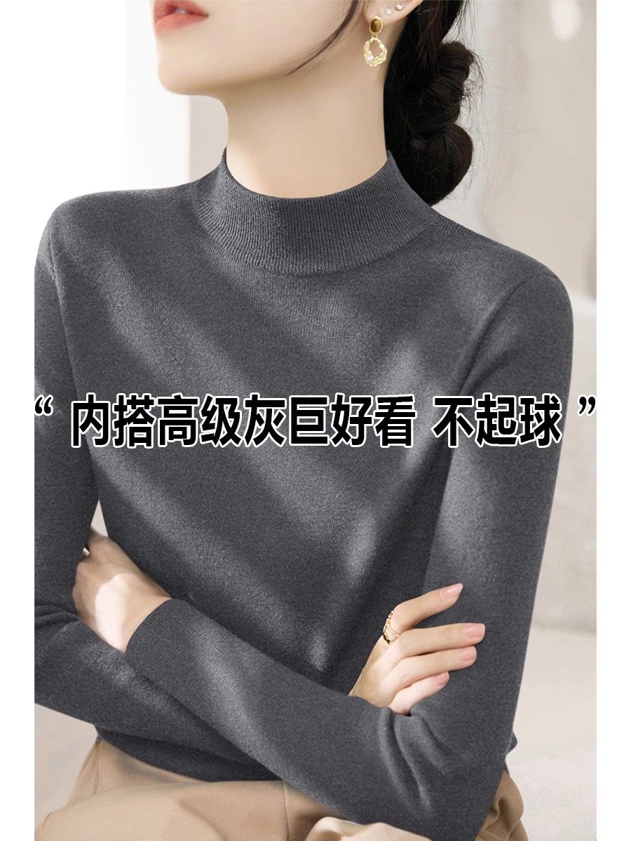 秋冬2025新款半高领修身内搭打底毛衣女装法式高级灰色长袖针织衫