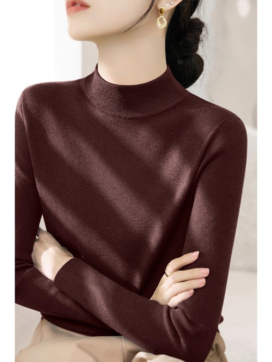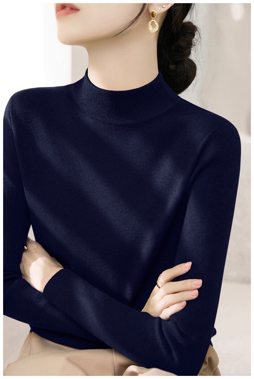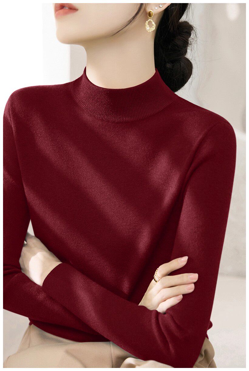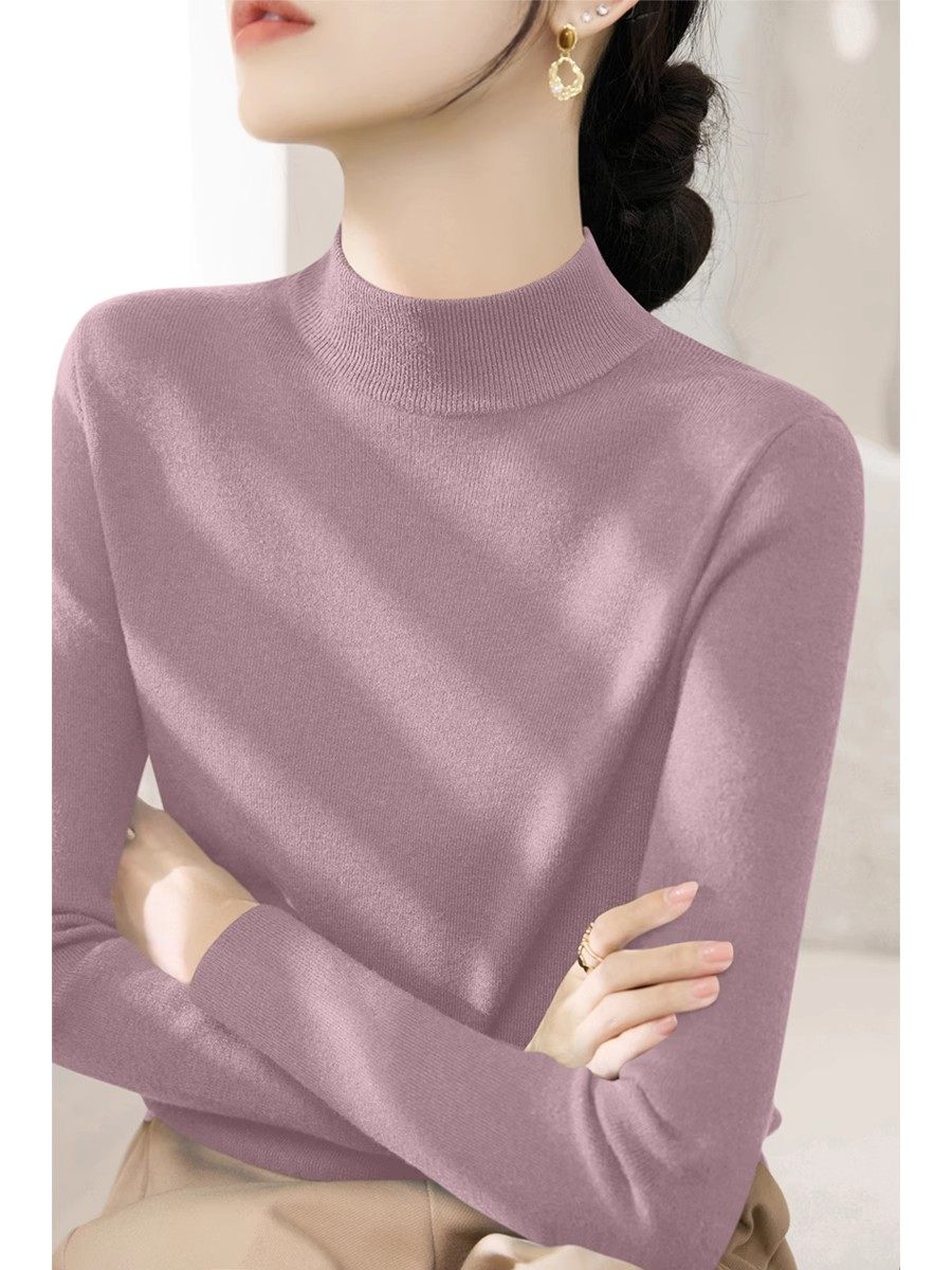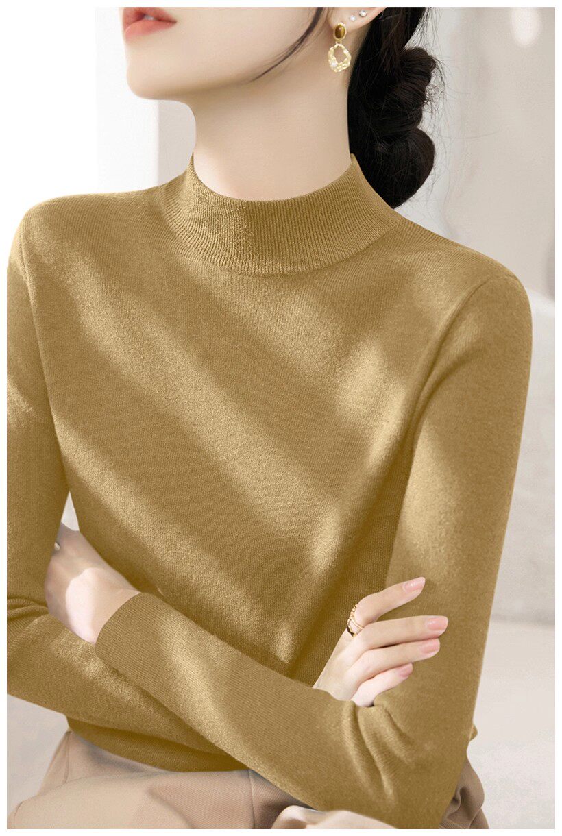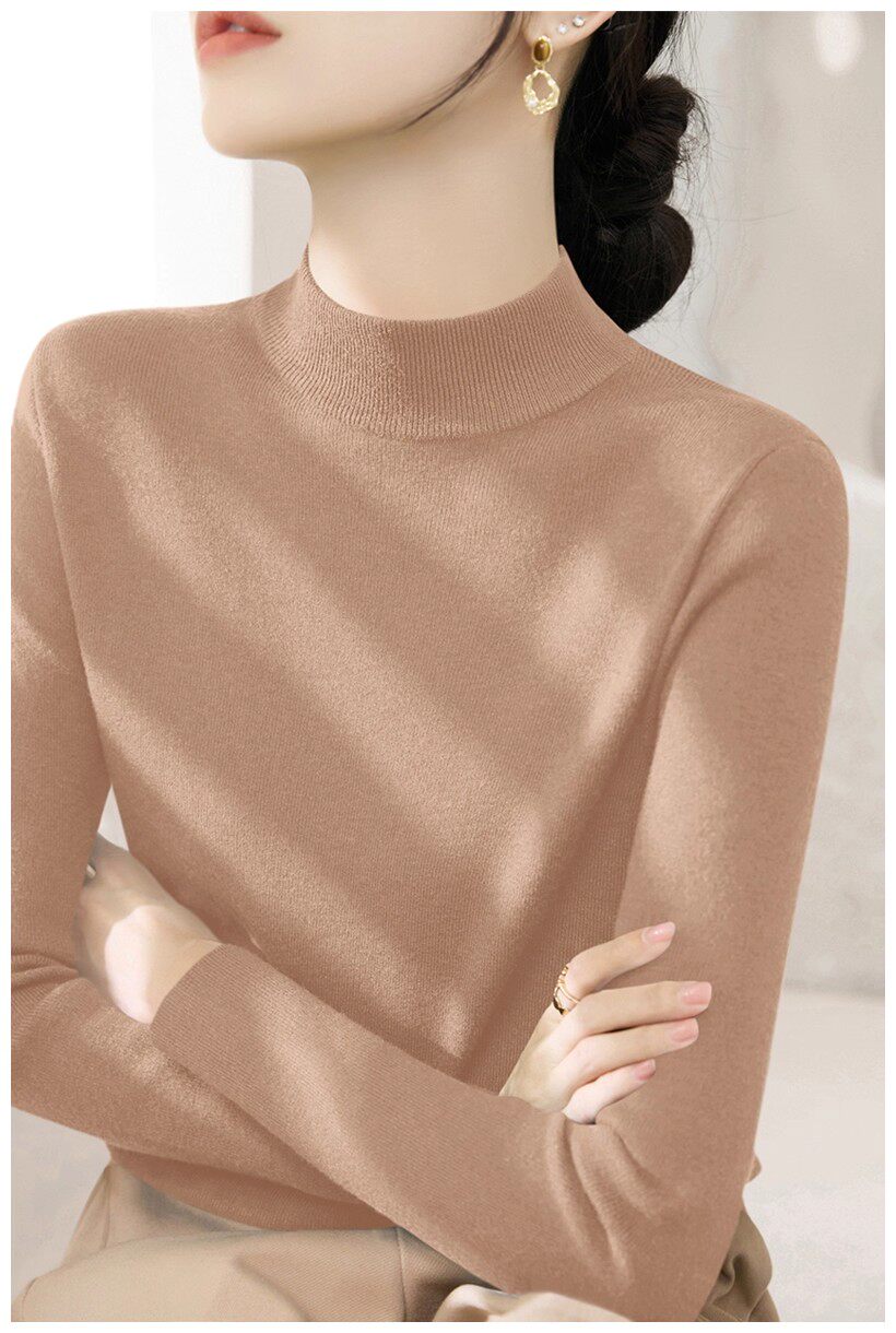 秋冬2025新款半高领修身内搭打底毛衣女装法式高级灰色长袖针织衫
