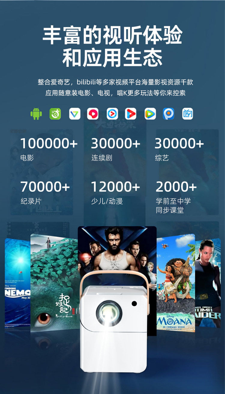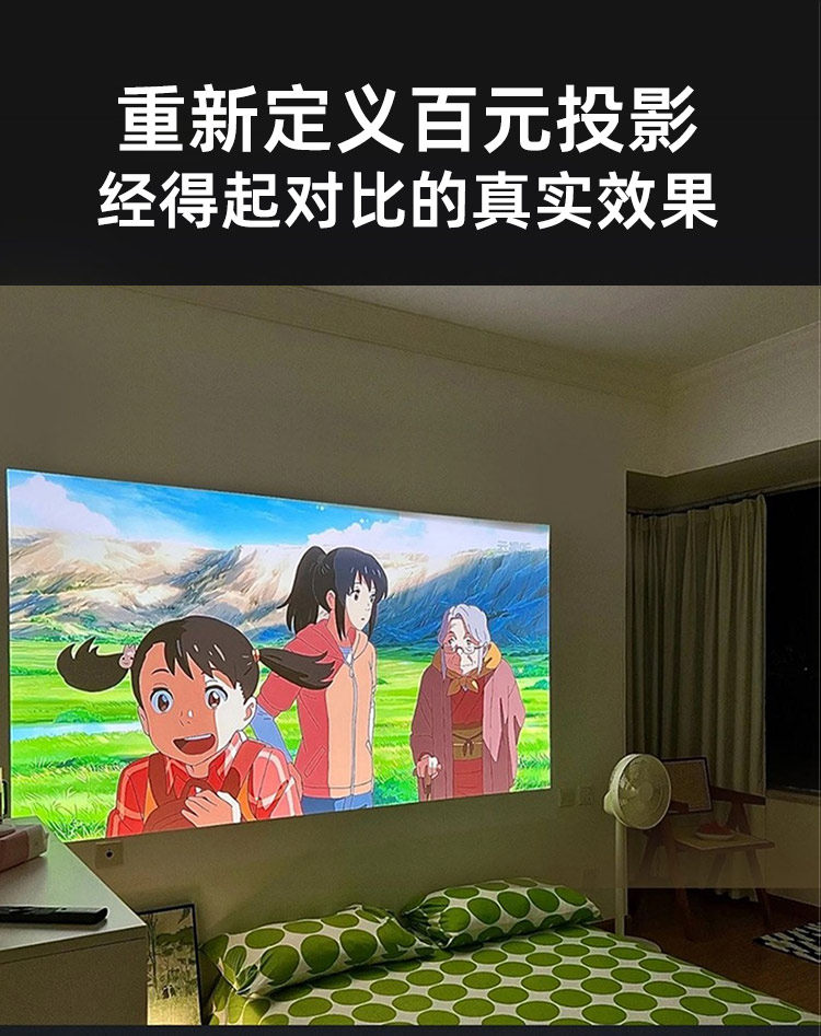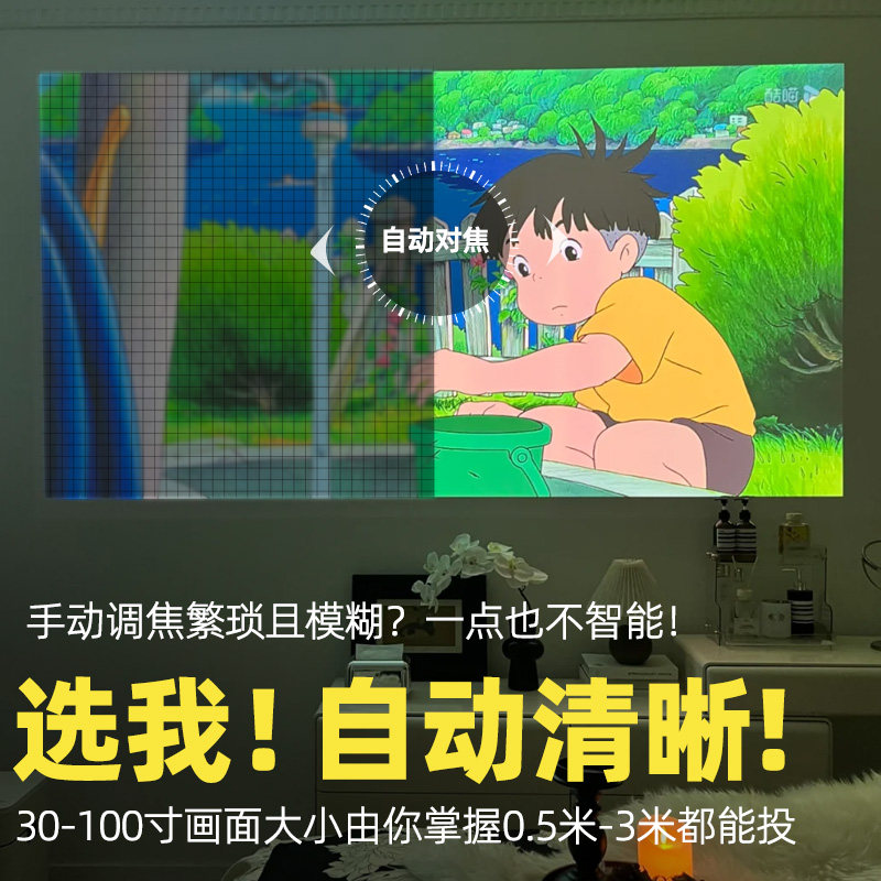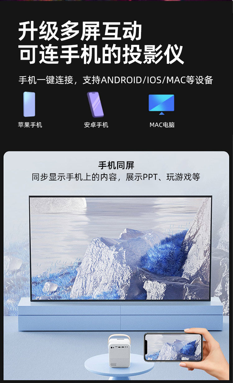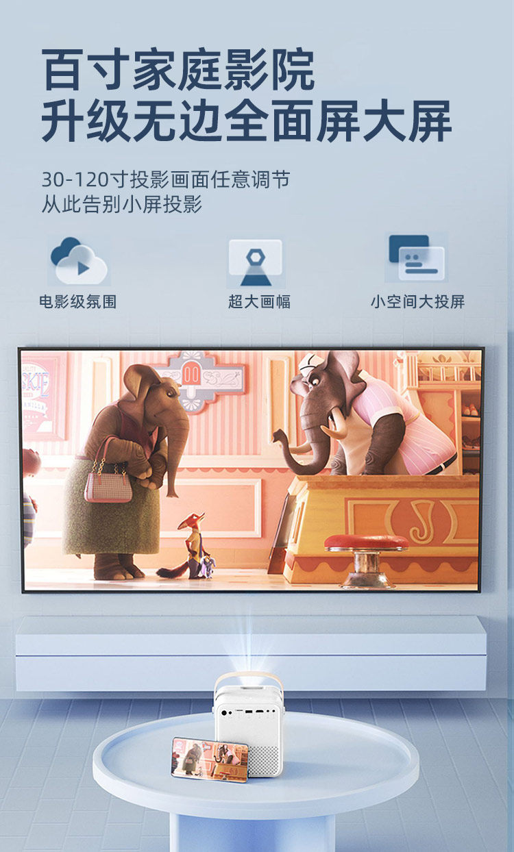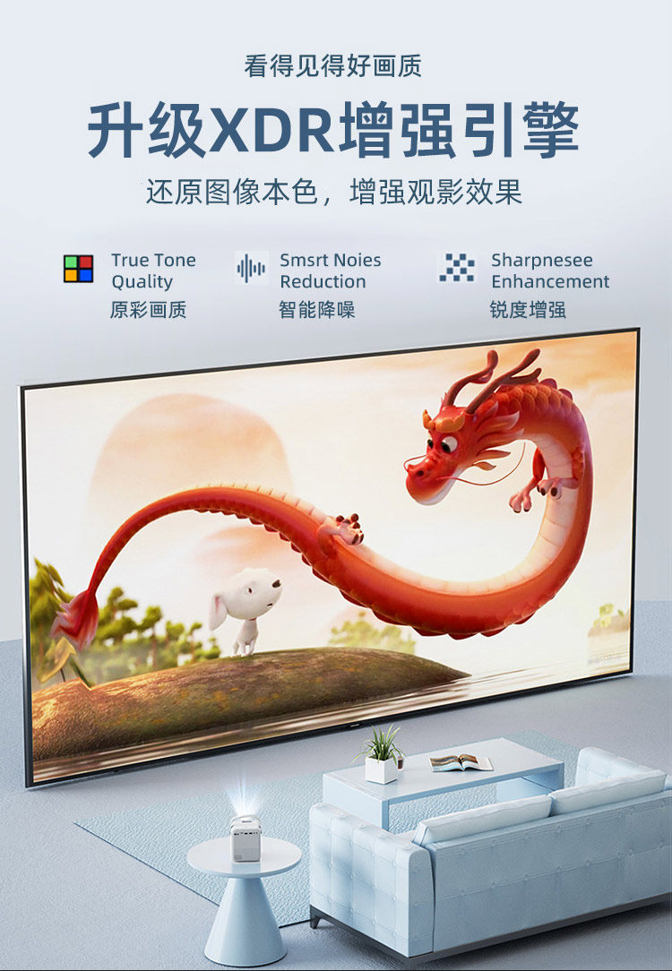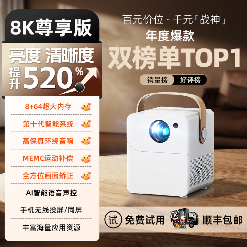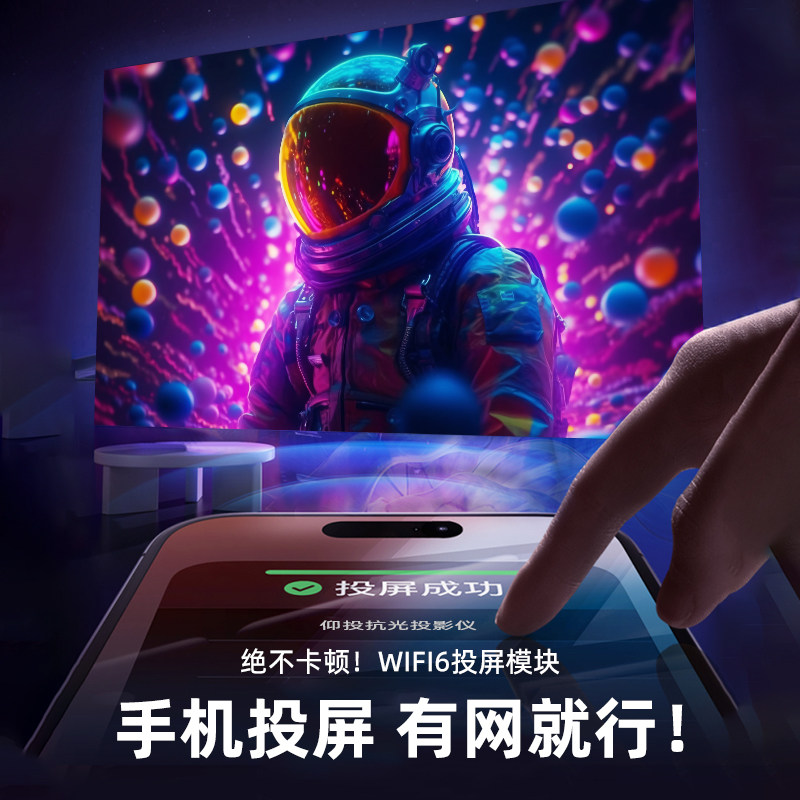 投影仪千元配置新款4K超高清智能家用墙投卧室客厅家庭影院手机投屏微小型便携宿舍学生自动对焦5G投影机电视