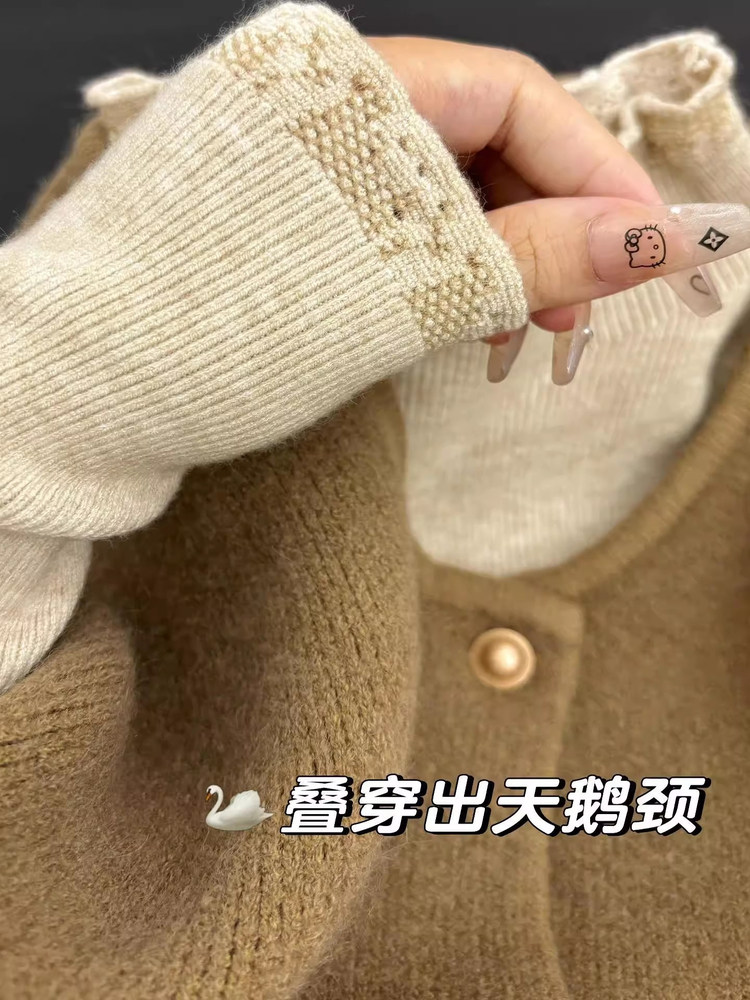 韩系半高领蕾丝针织衫女秋冬洋气叠穿马甲木耳边内搭软糯打底套装