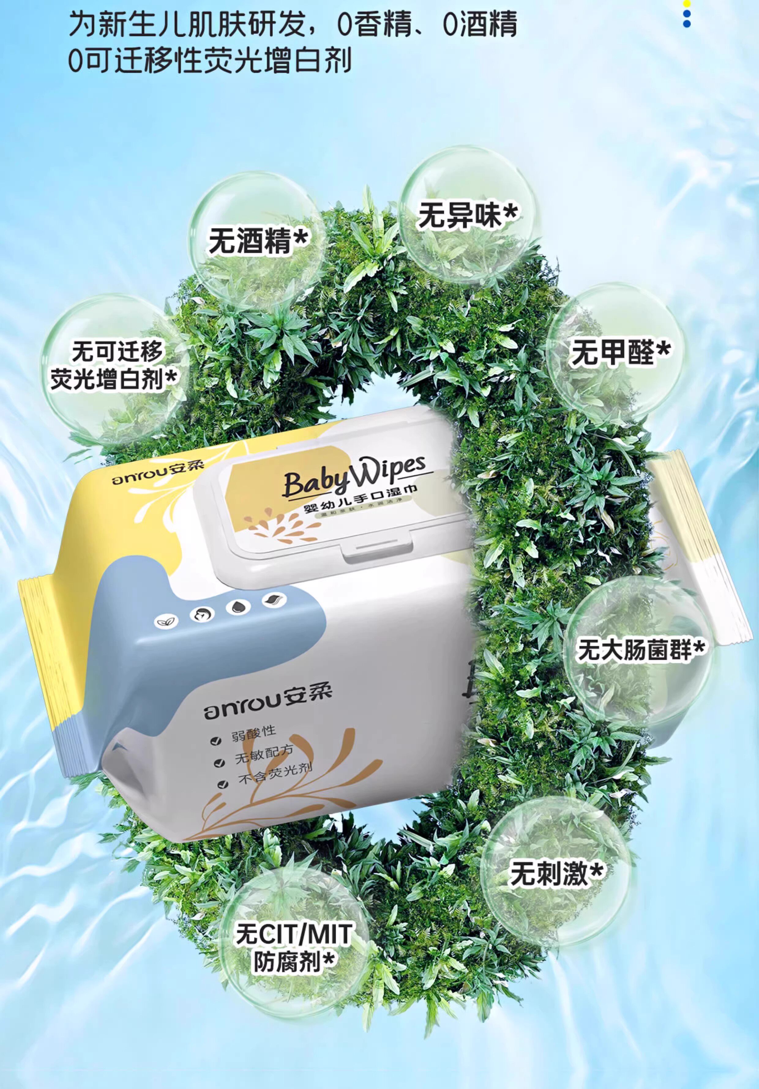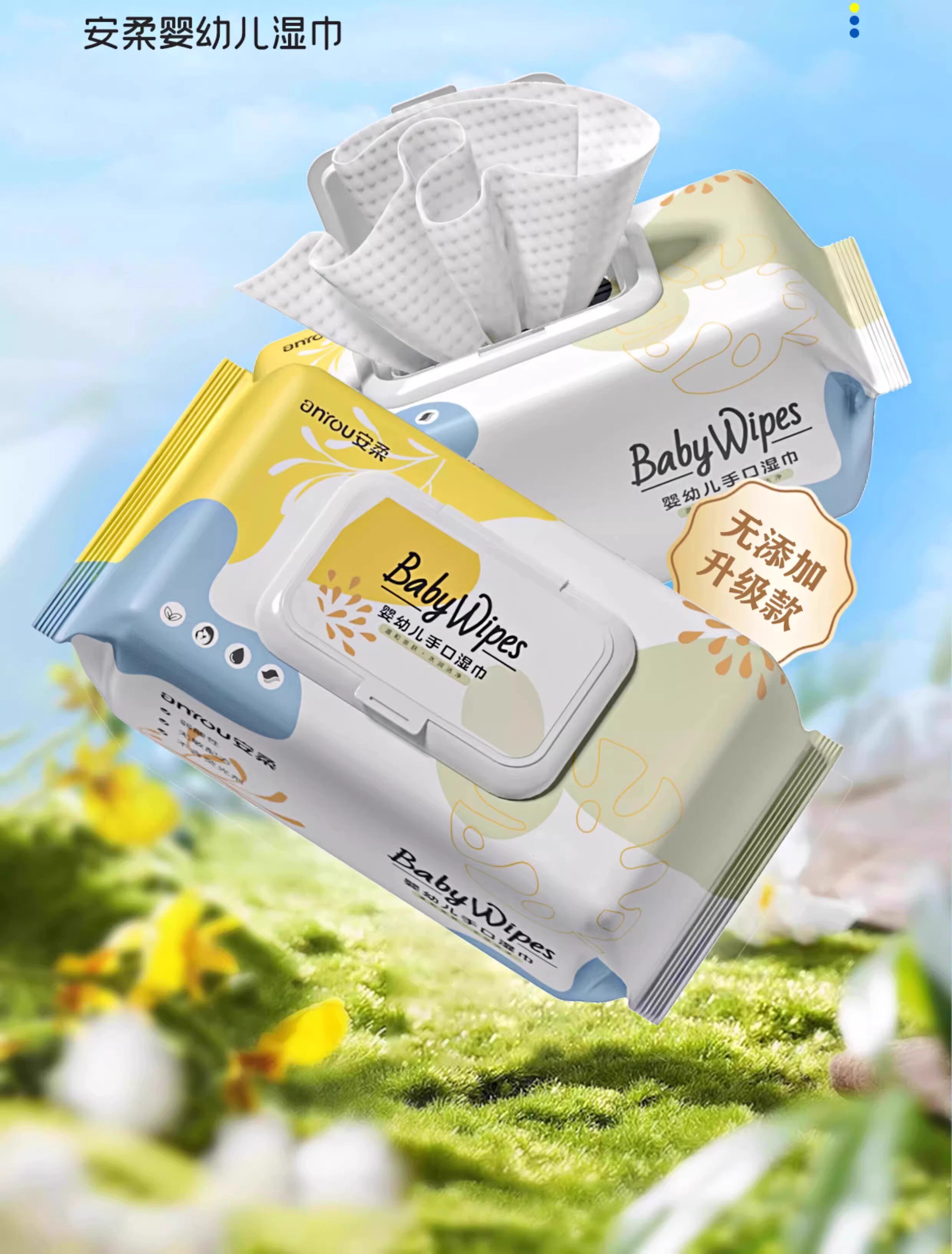 婴儿湿巾纸新生宝宝屁手口专用幼儿童湿纸巾家用实惠装奥朵黄绿款